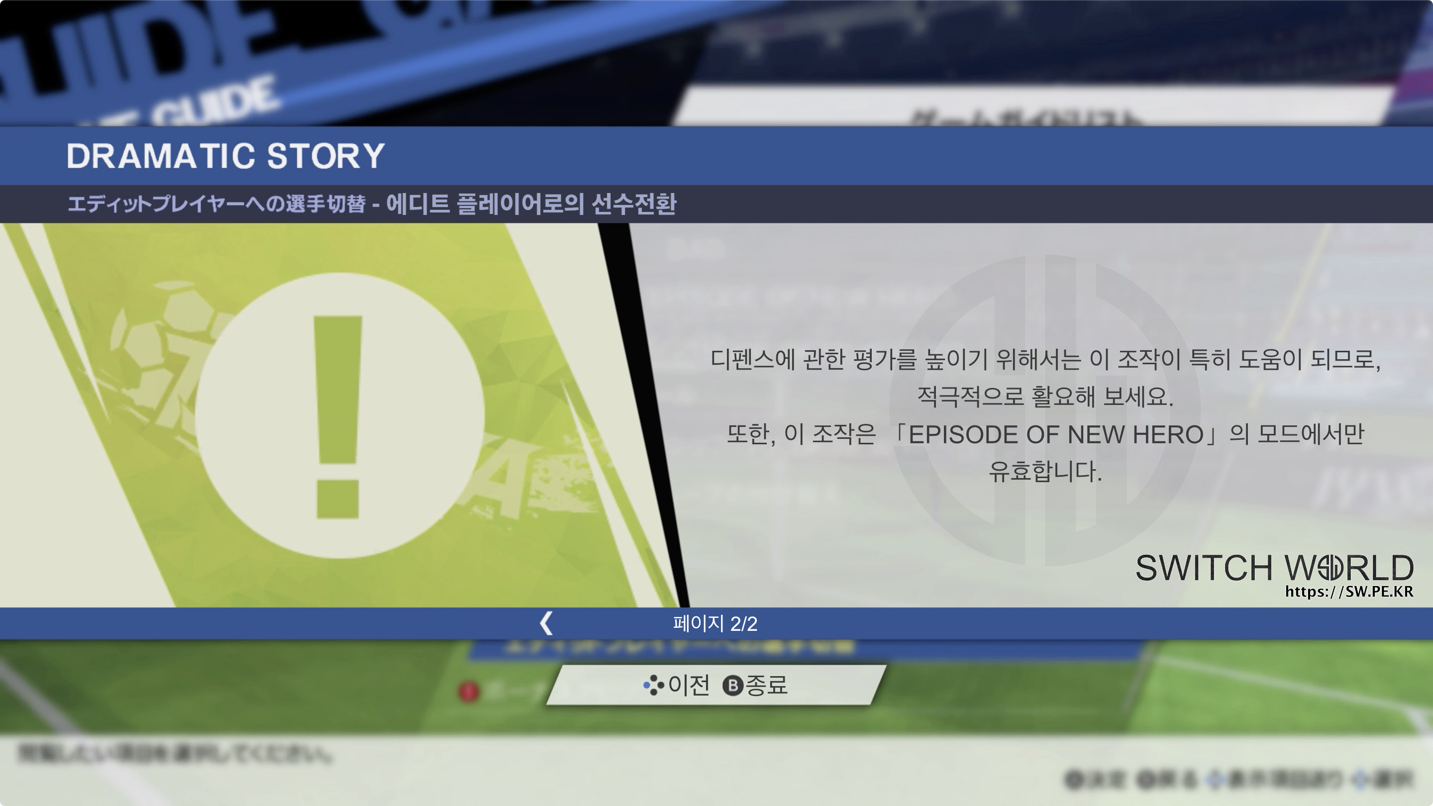 「EPISODE OF NEW HERO」에서는 디펜스 중에 [R 스틱을 누르는 것] 으로 에디트 플레이어로 조작선수를 변경 할 수 있습니다.