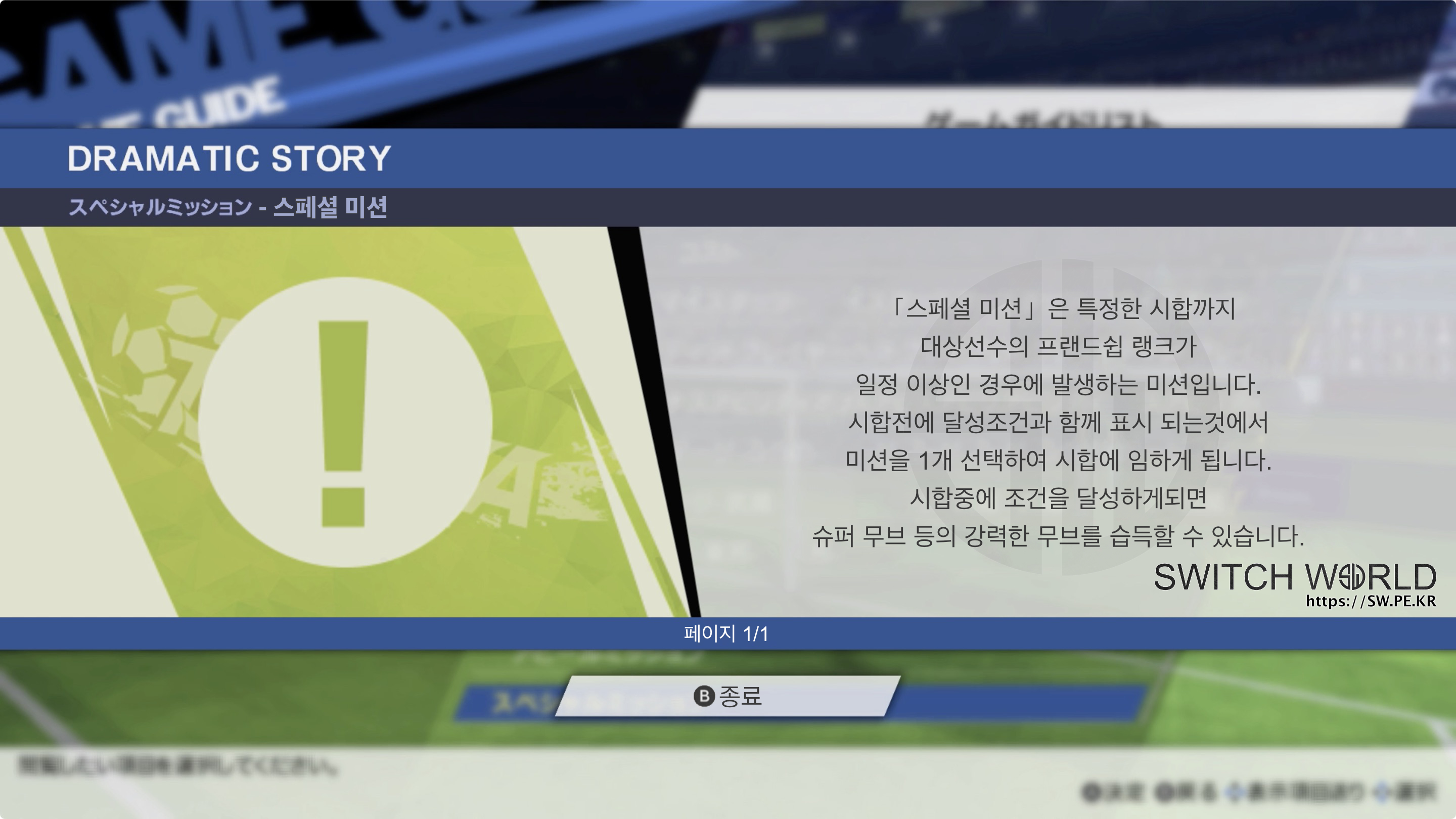 「스페셜 미션」은 특정한 시합까지 대상선수의 프랜드쉽 랭크가 일정 이상인 경우에 발생하는 미션입니다.