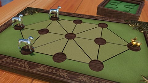 | 육각형의 돌을 이어 길을 만드는 게임 | 뛰어넘어 마커를 잡는 프랑스 남부에서 시작된 게임 | 도망치는 토끼와 쫓는 사냥개의 2인용 전략 게임 |