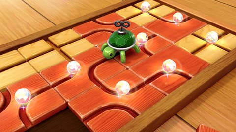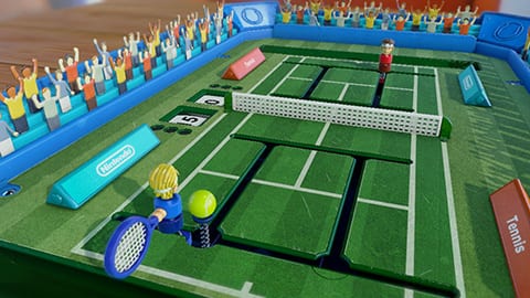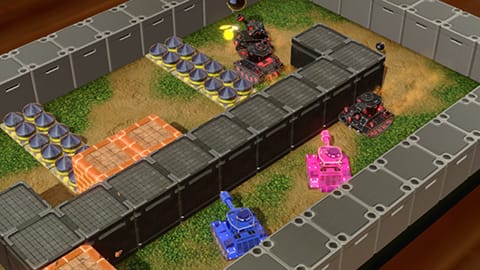 | Joy-Con 을 사용하여 캐스팅! | 지형을 이용해 상대를 격파하는 1vs1 전차 배틀 | 나란히 줄지어서 협력 배틀! |