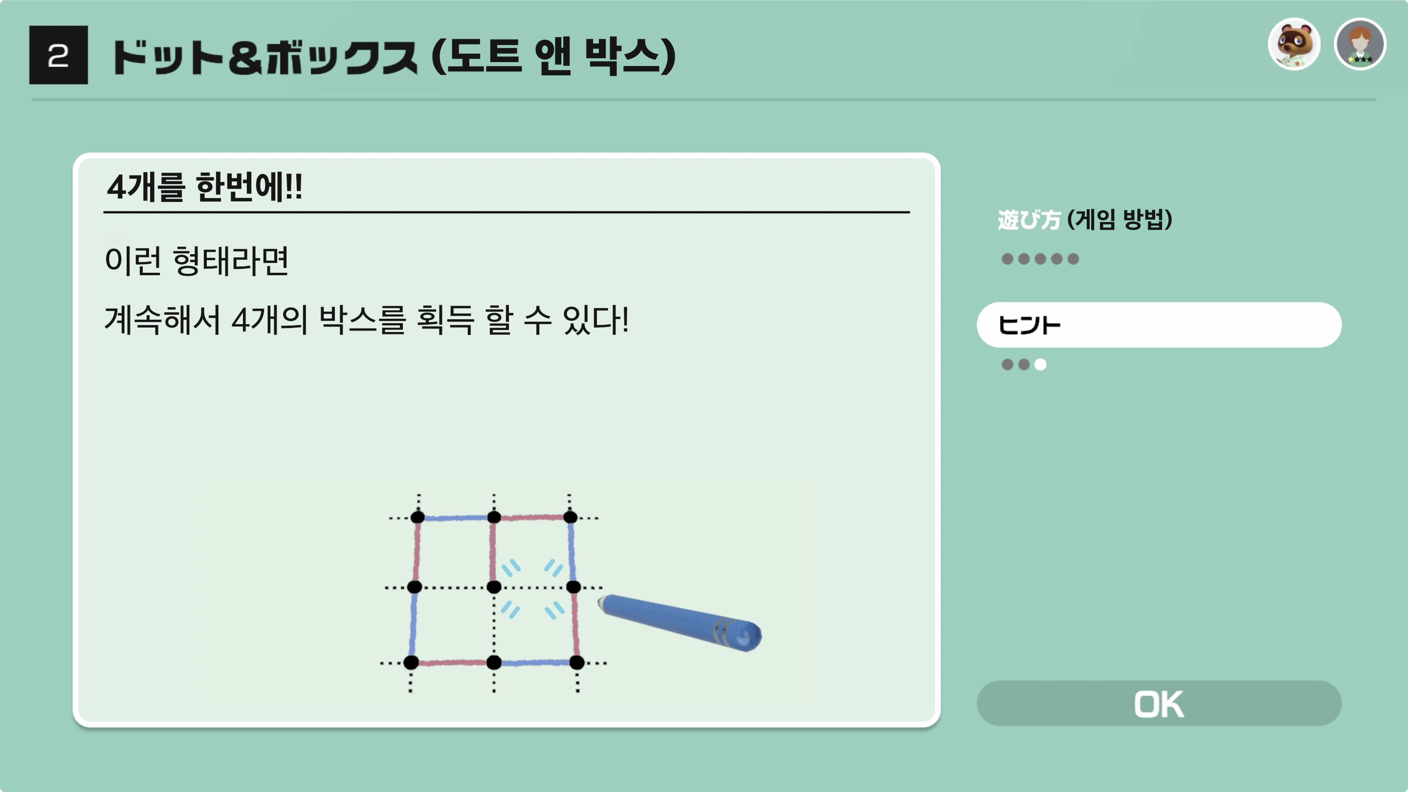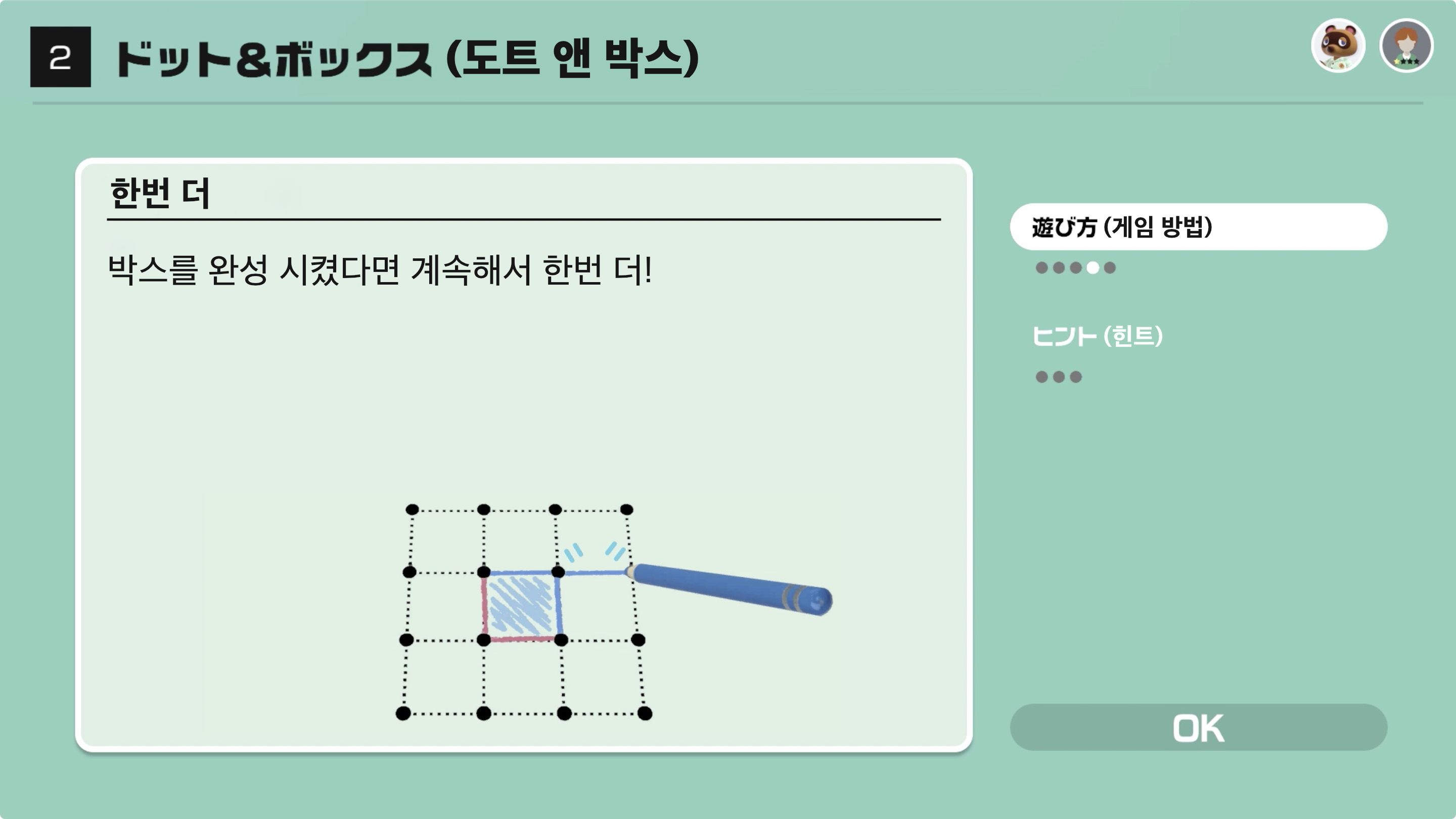 박스의 3번째 선을 그으면 상대에게 빼앗겨 버린다! 2번째에서 멈추자.