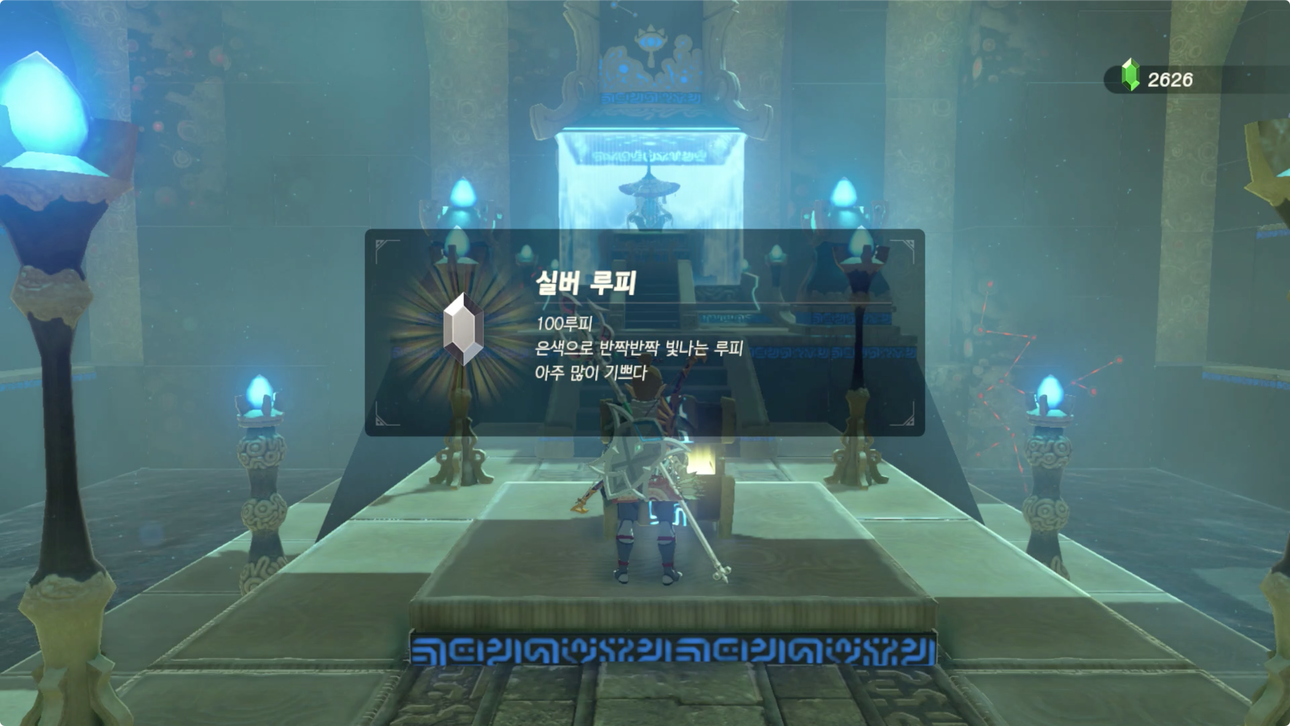 내부의 보물상자에서는 100 루피를 획득 가능하다.