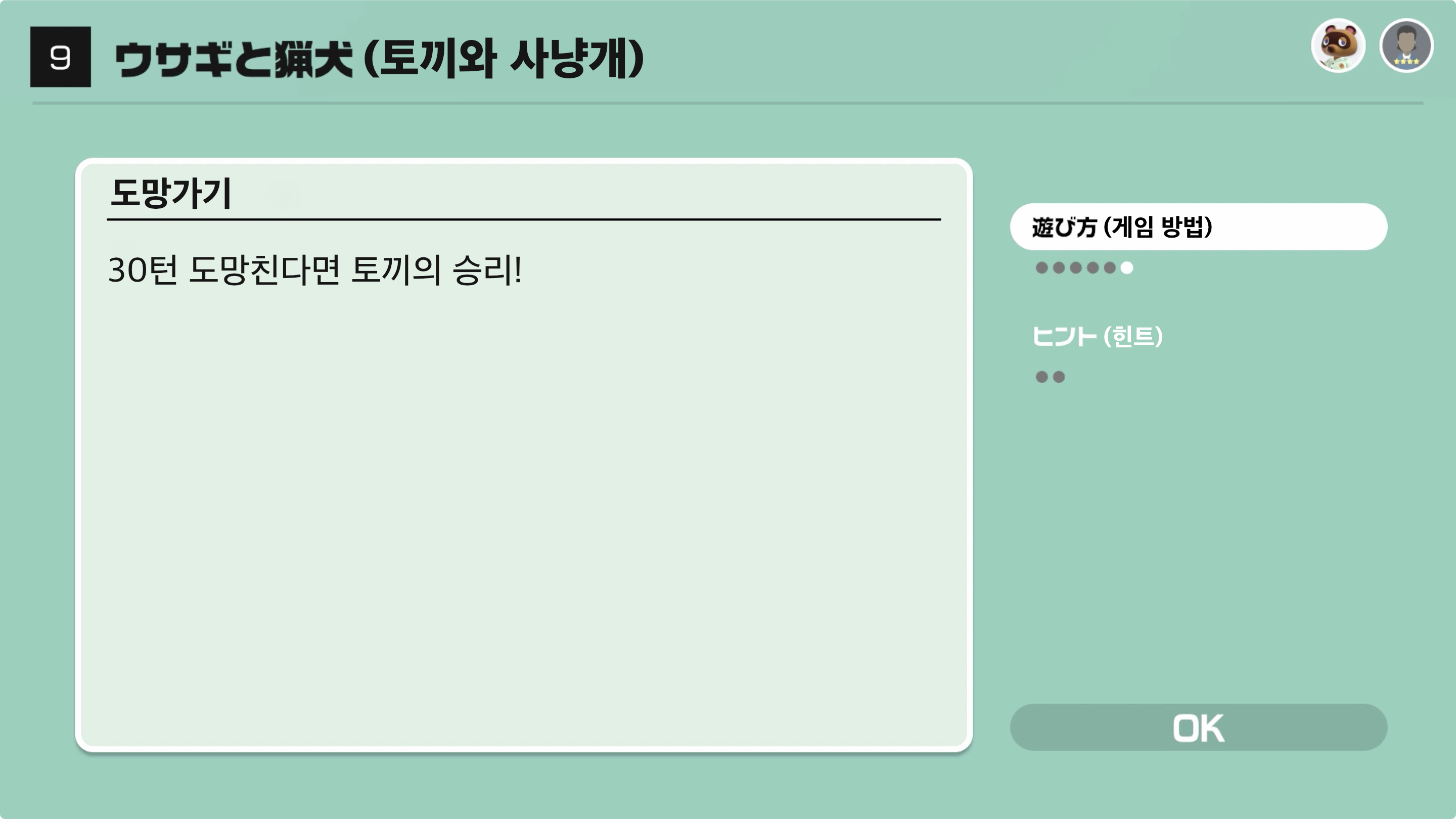 토끼와 사냥개를 교대로 움직이며 즐기는 게임