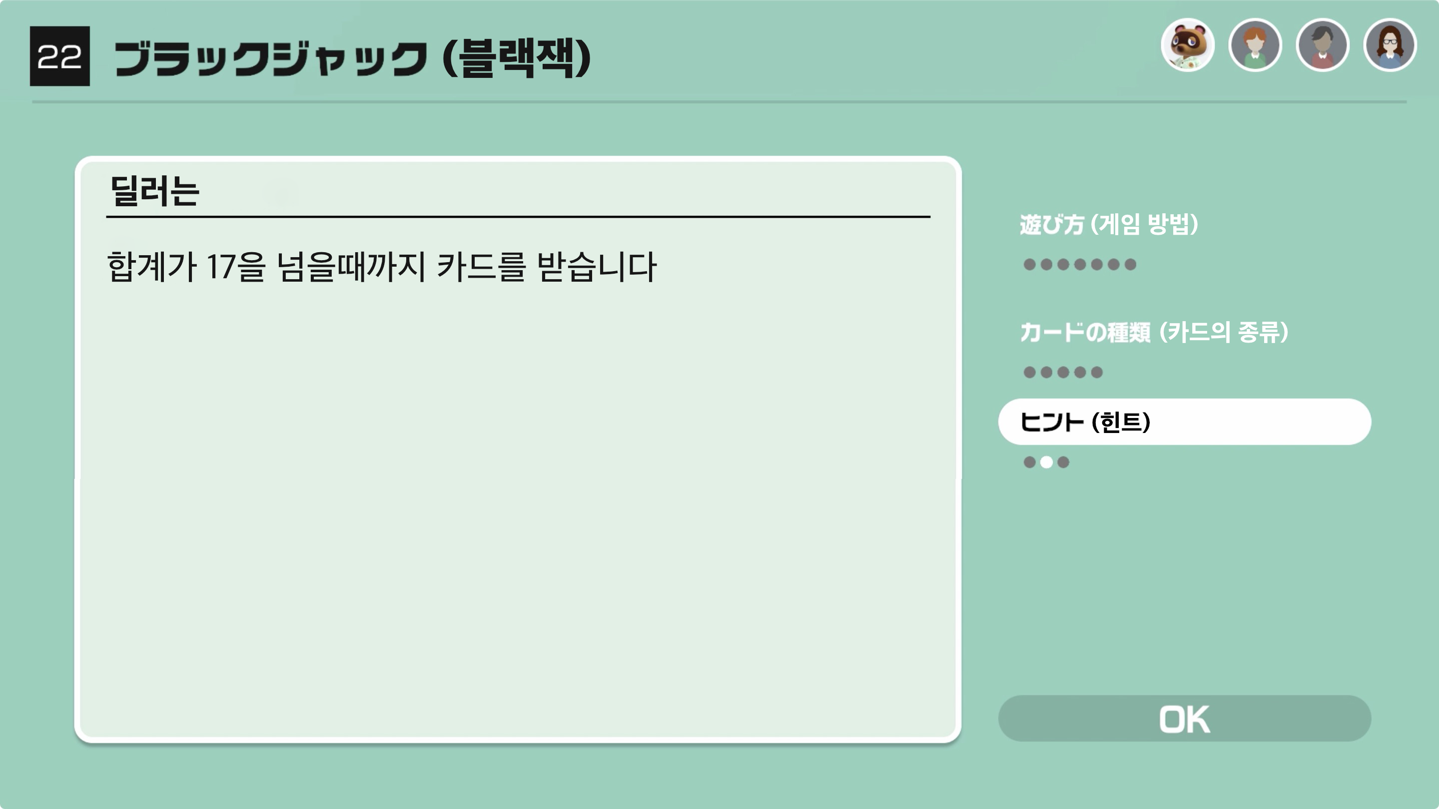 아슬아슬할 때까지 카드를 받을 것인지 그대로 승부를 할 것인지 정하자.
