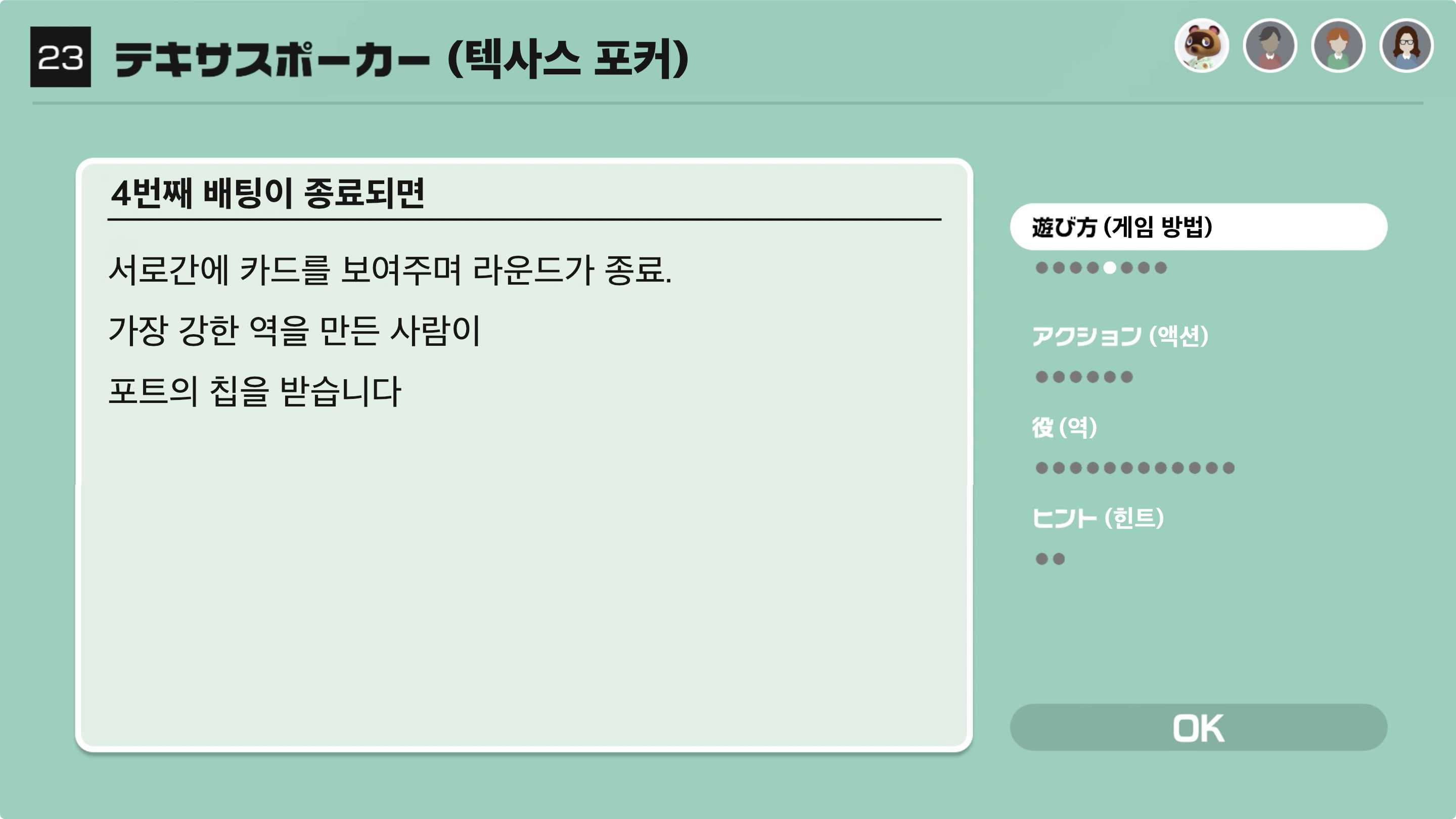 모든 라운드가 종료 되었을 때 가장 많은 칩을 모은 사람이 승리