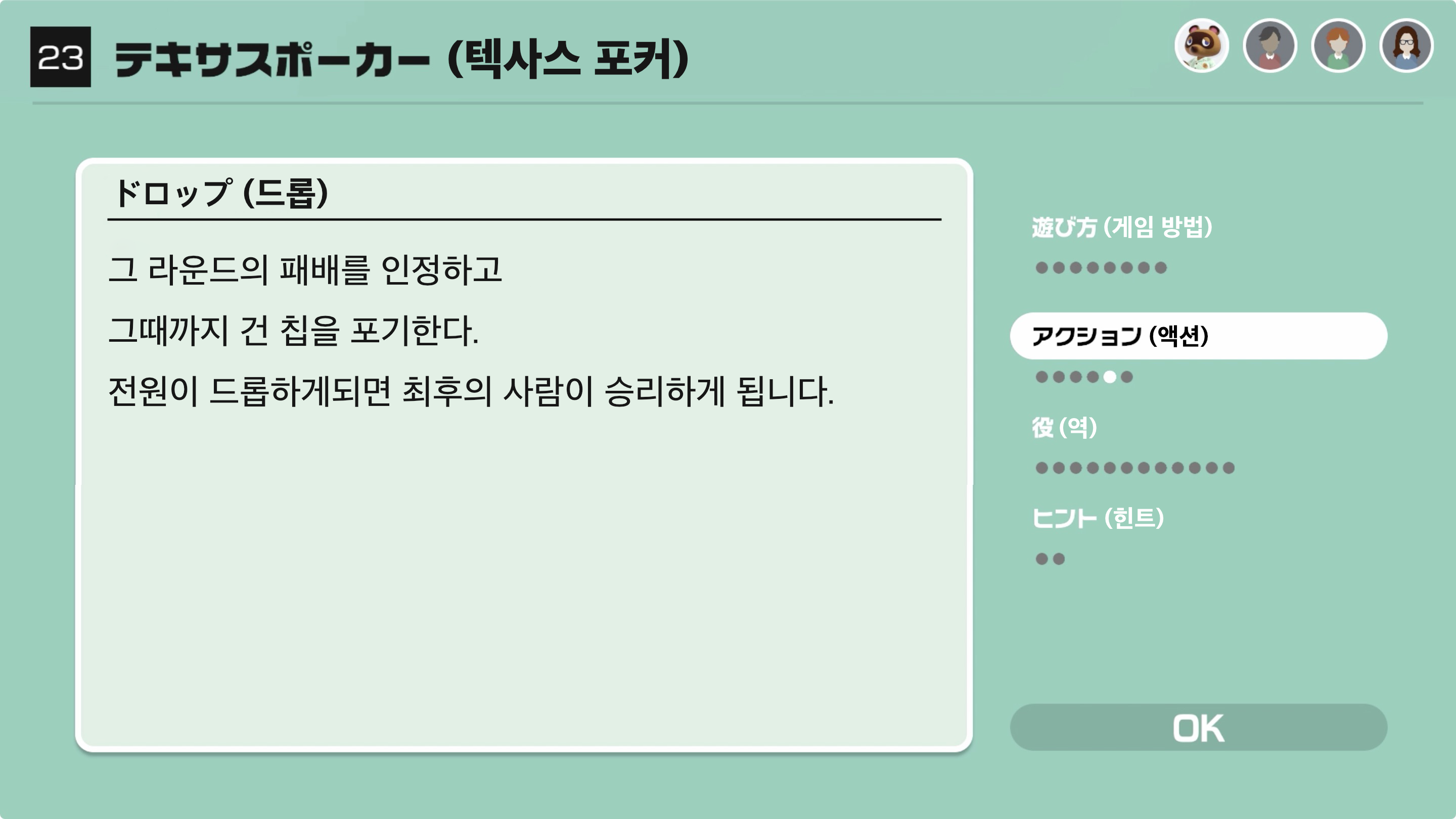 전원이 드롭하게되면 최후의 사람이 승리하게 됩니다.