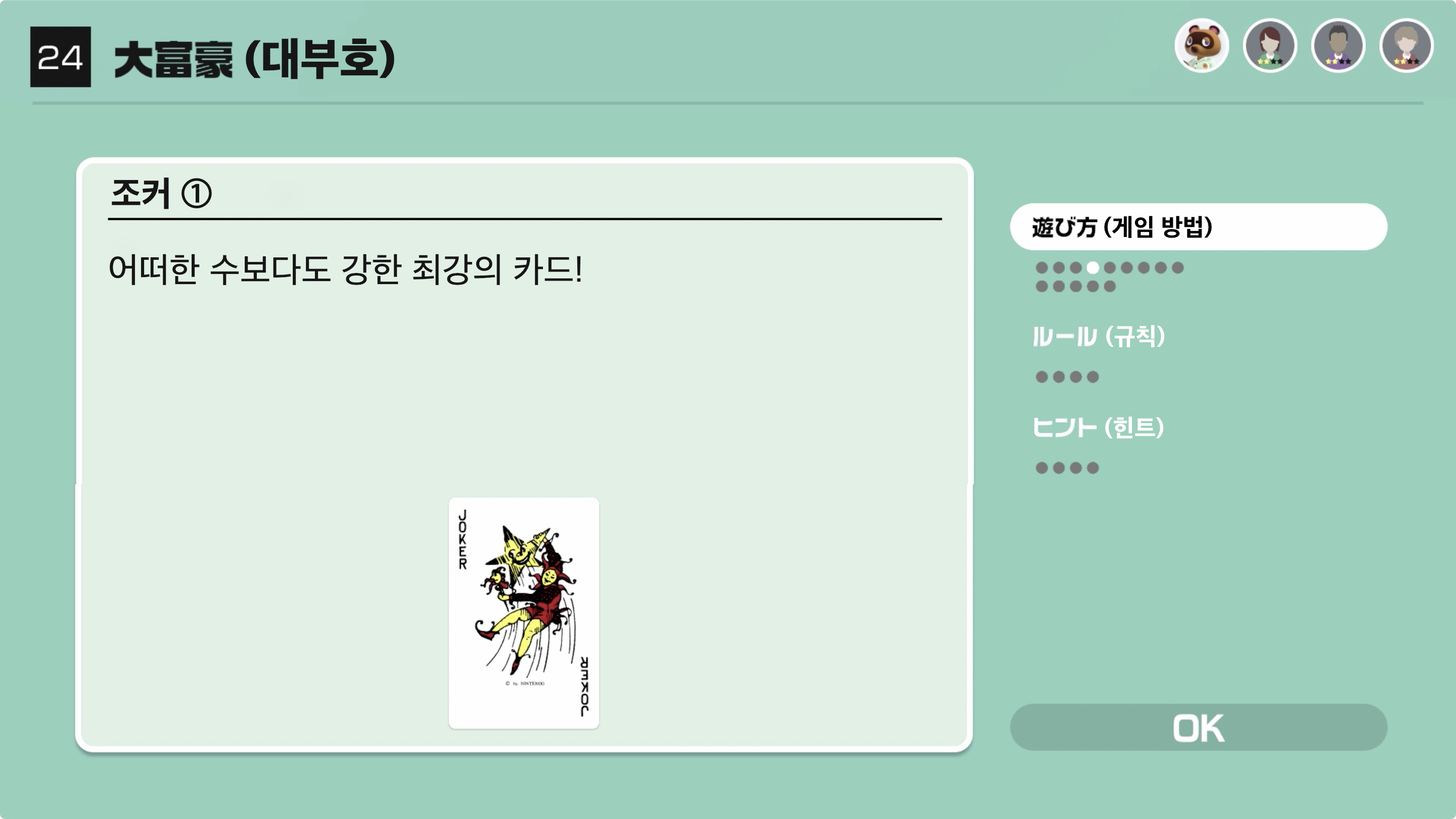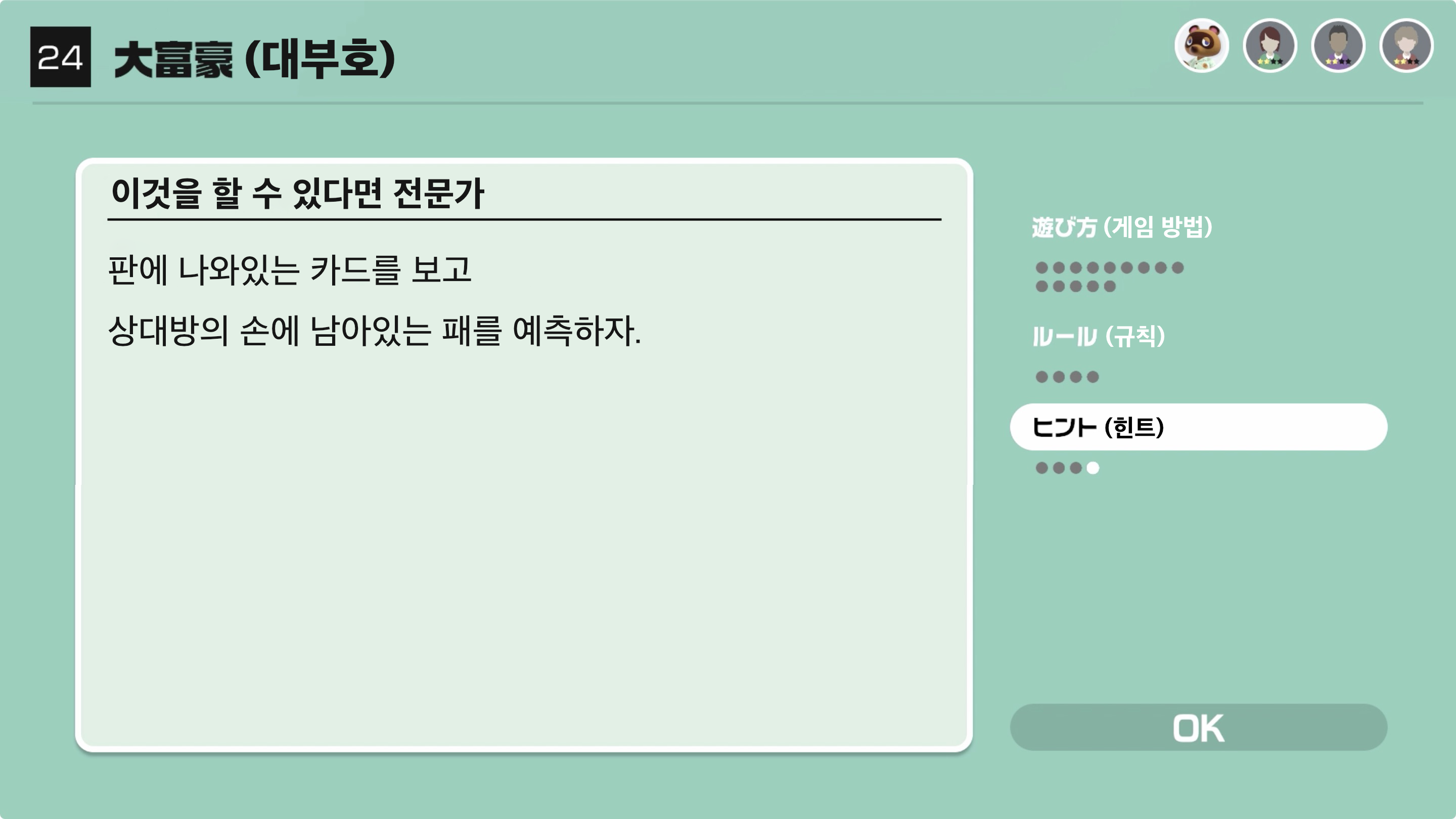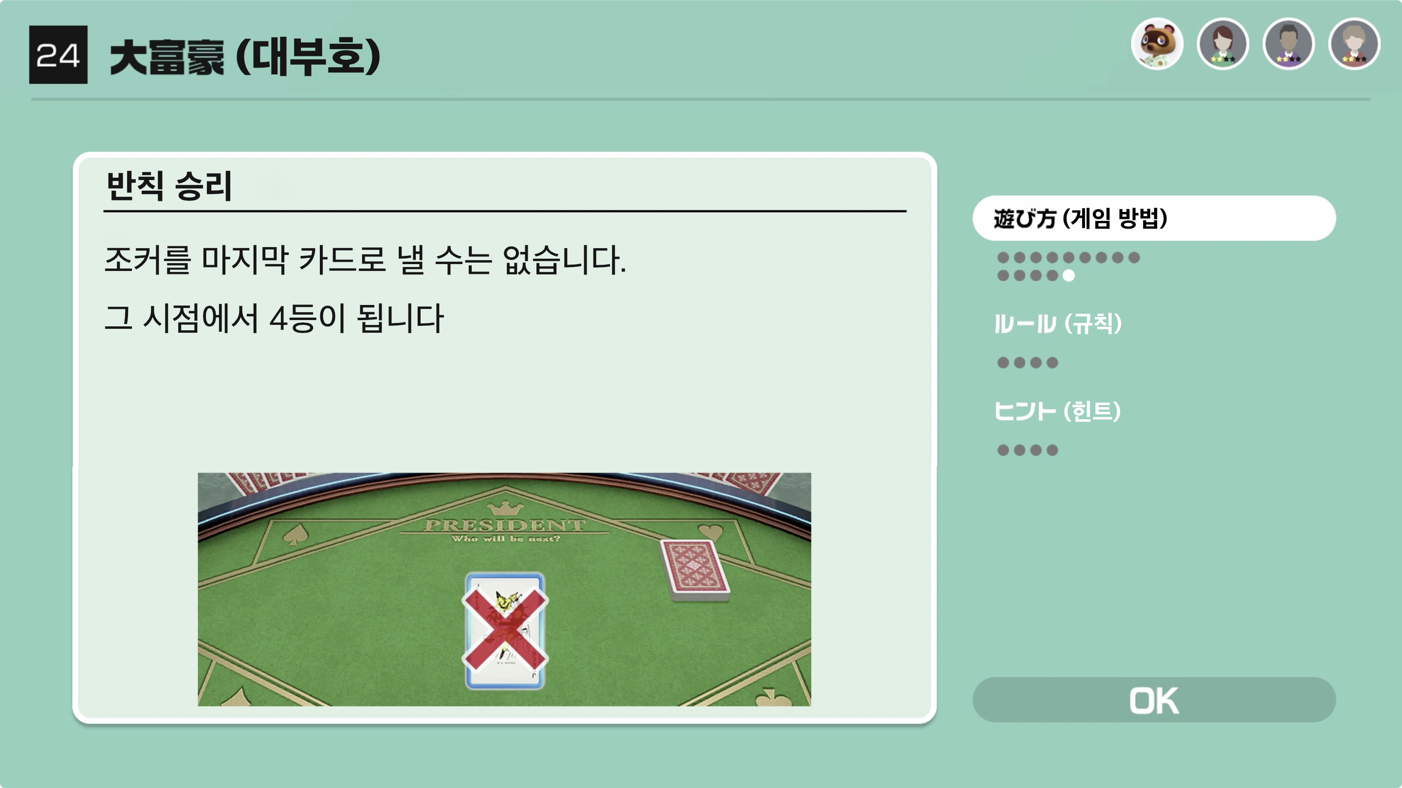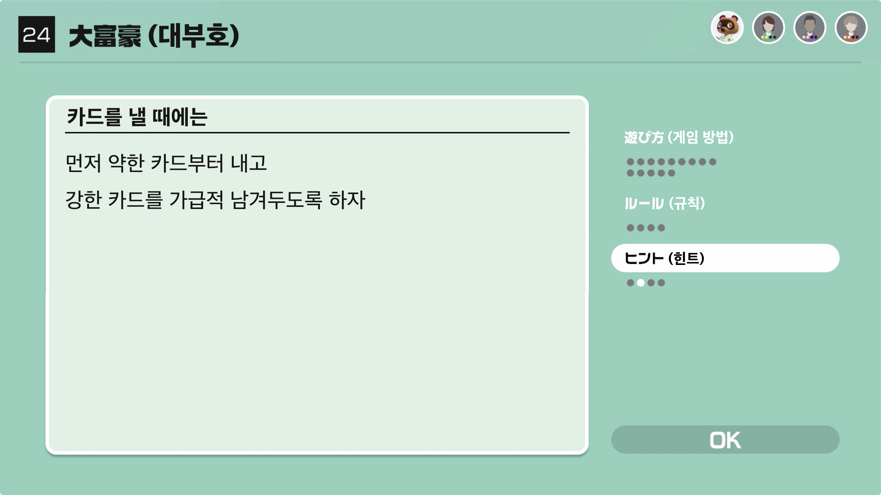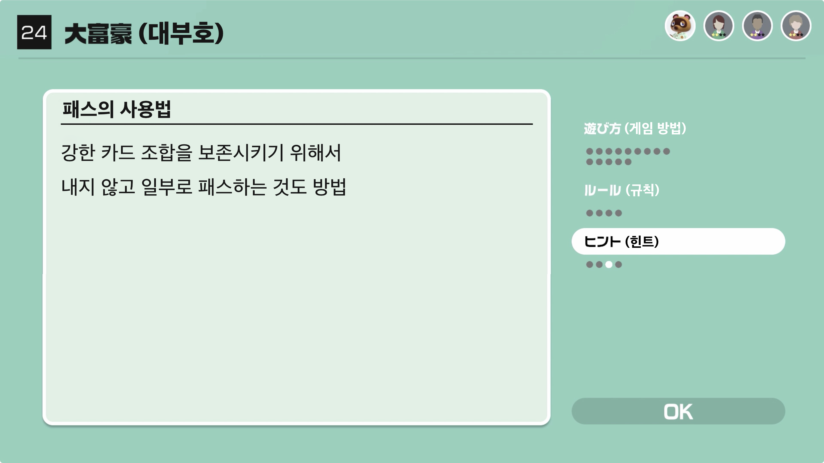 대부호(1위)인 사람은 다음 라운드에서도 1위가 되지 못한다면 4위로 몰락하게 된다