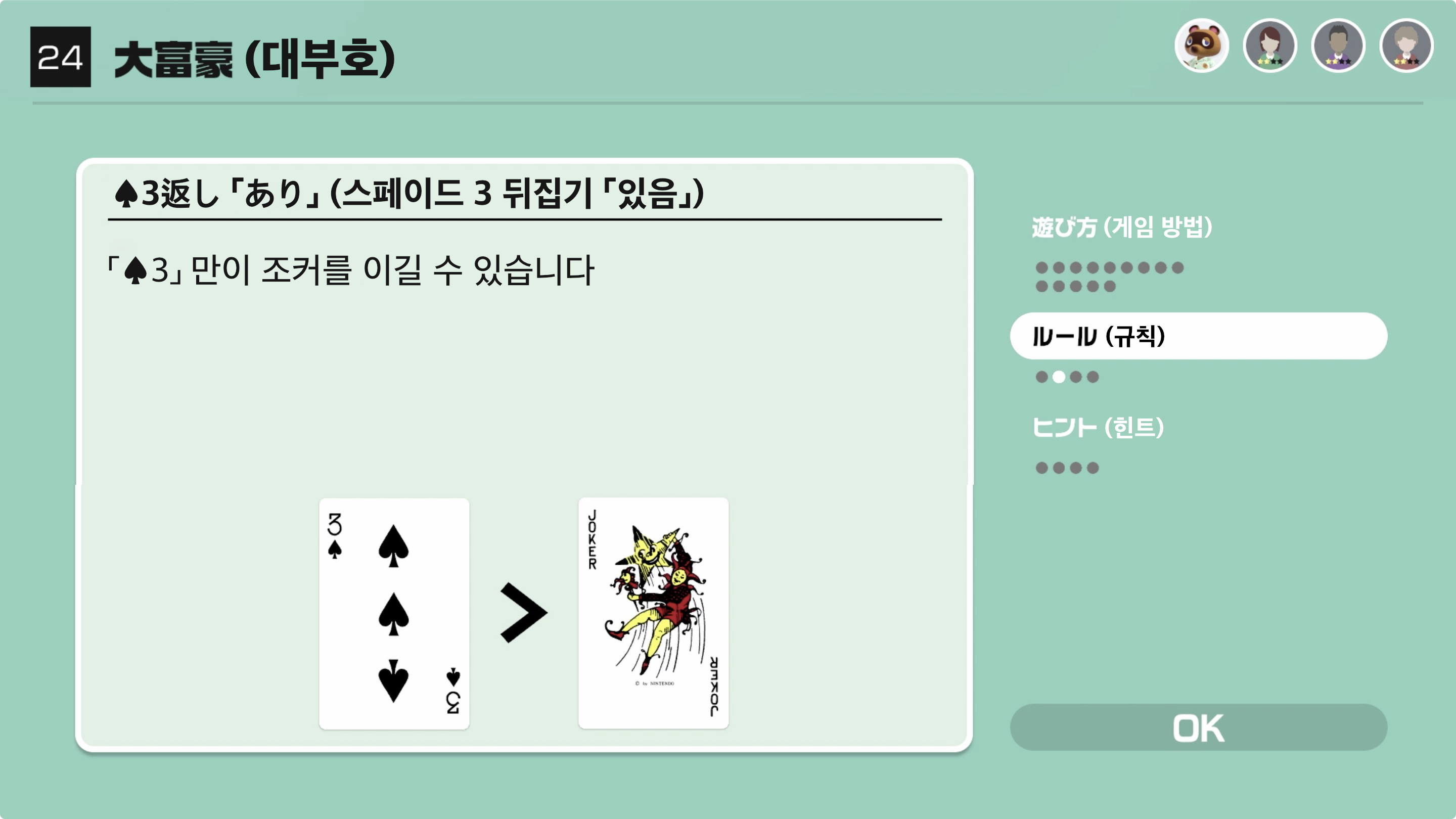 「♠︎3」 만이 조커를 이길 수 있습니다