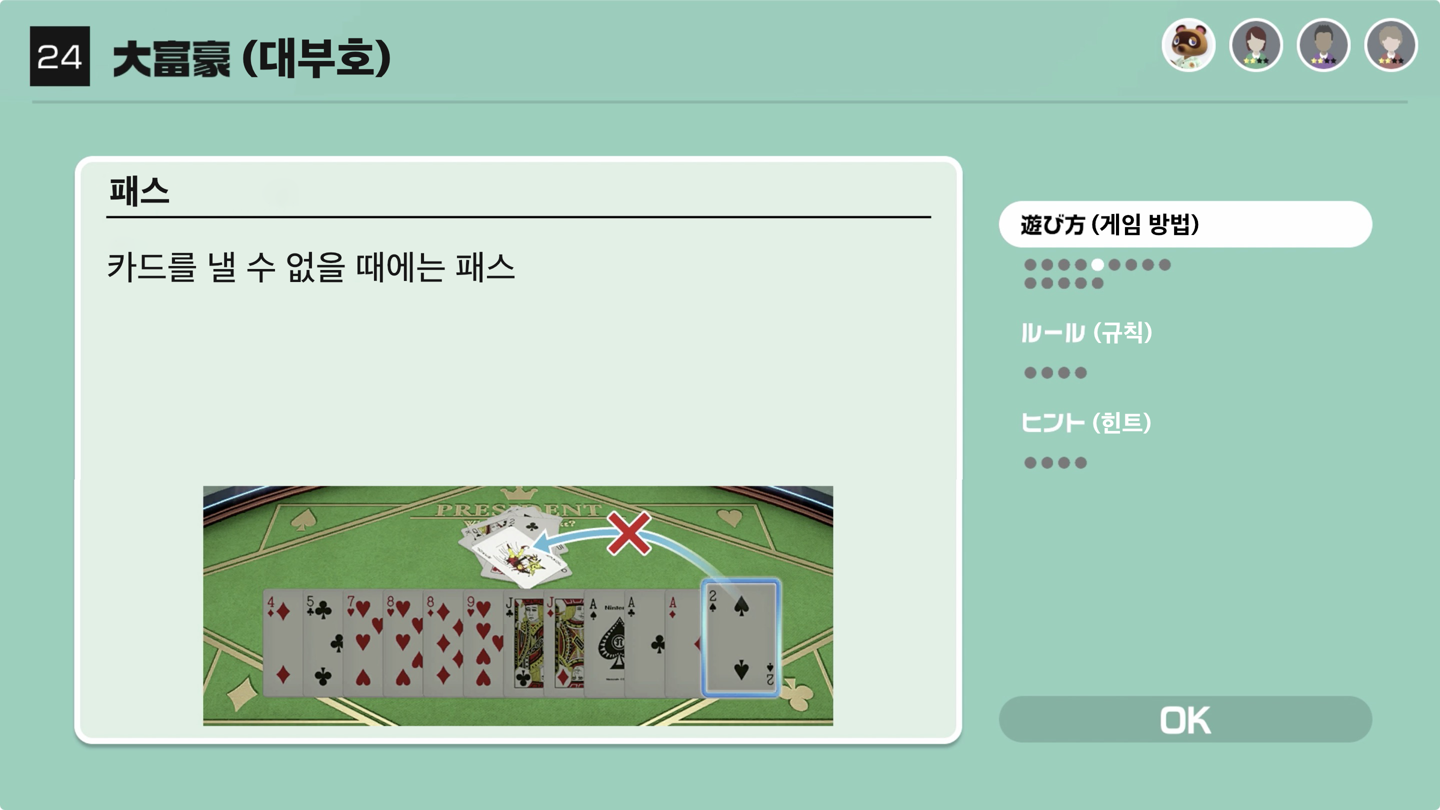 강한 카드 조합을 보존시키기 위해서 내지 않고 일부로 패스하는 것도 방법
