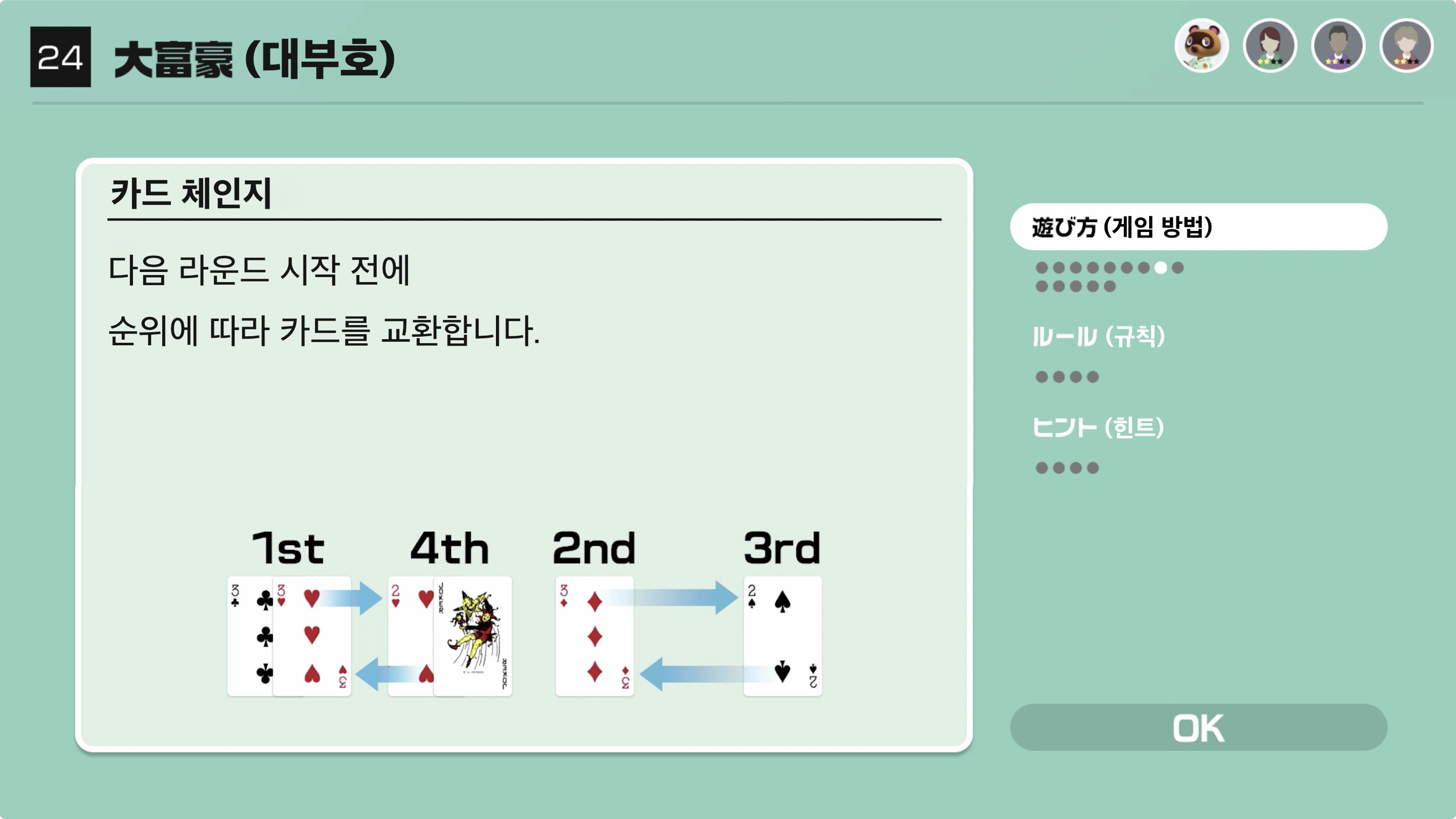 다음 라운드 시작 전에 순위에 따라 카드를 교환합니다.