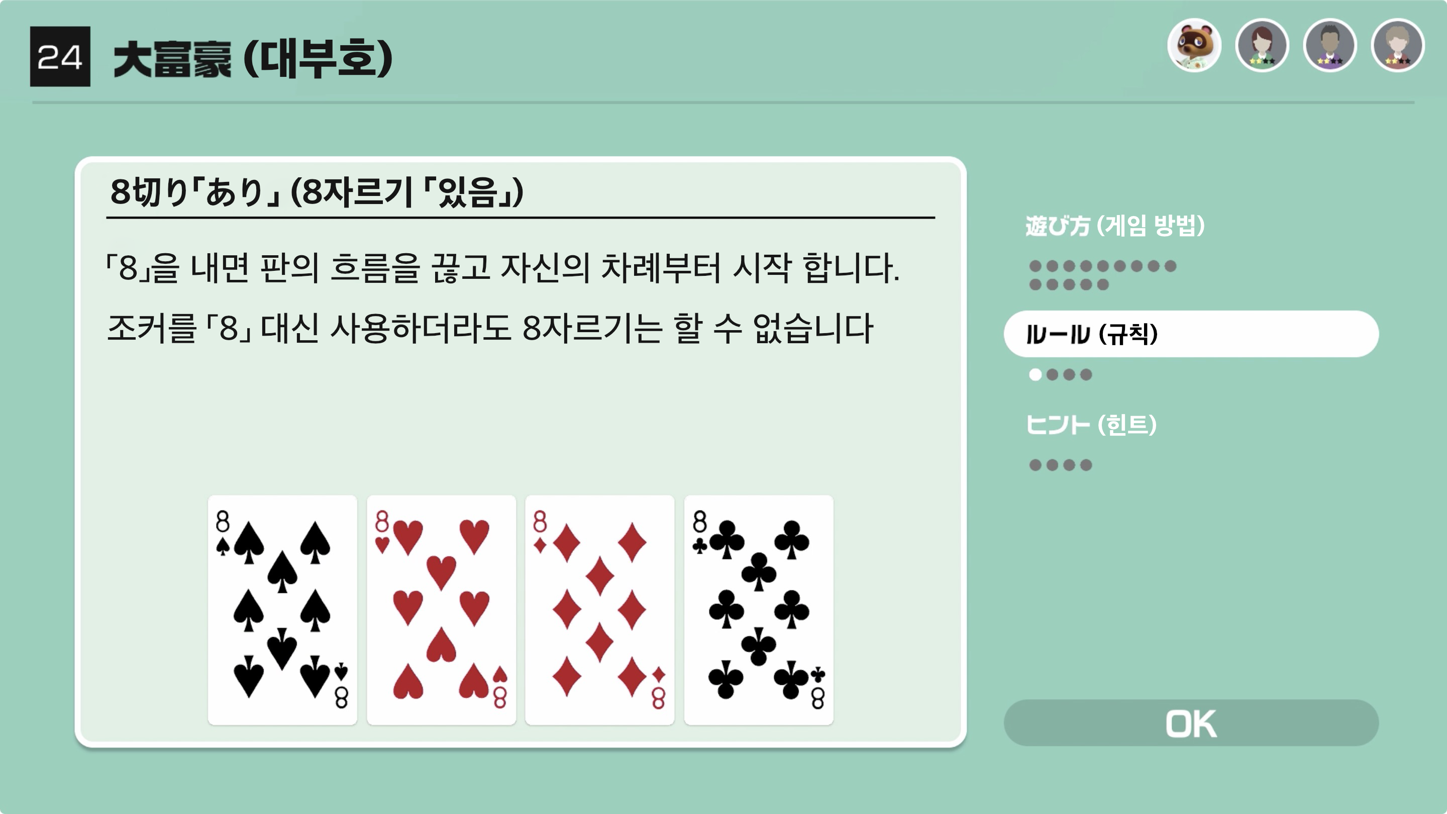「8」을 내면 판의 흐름을 끊고 자신의 차례부터 시작 합니다.