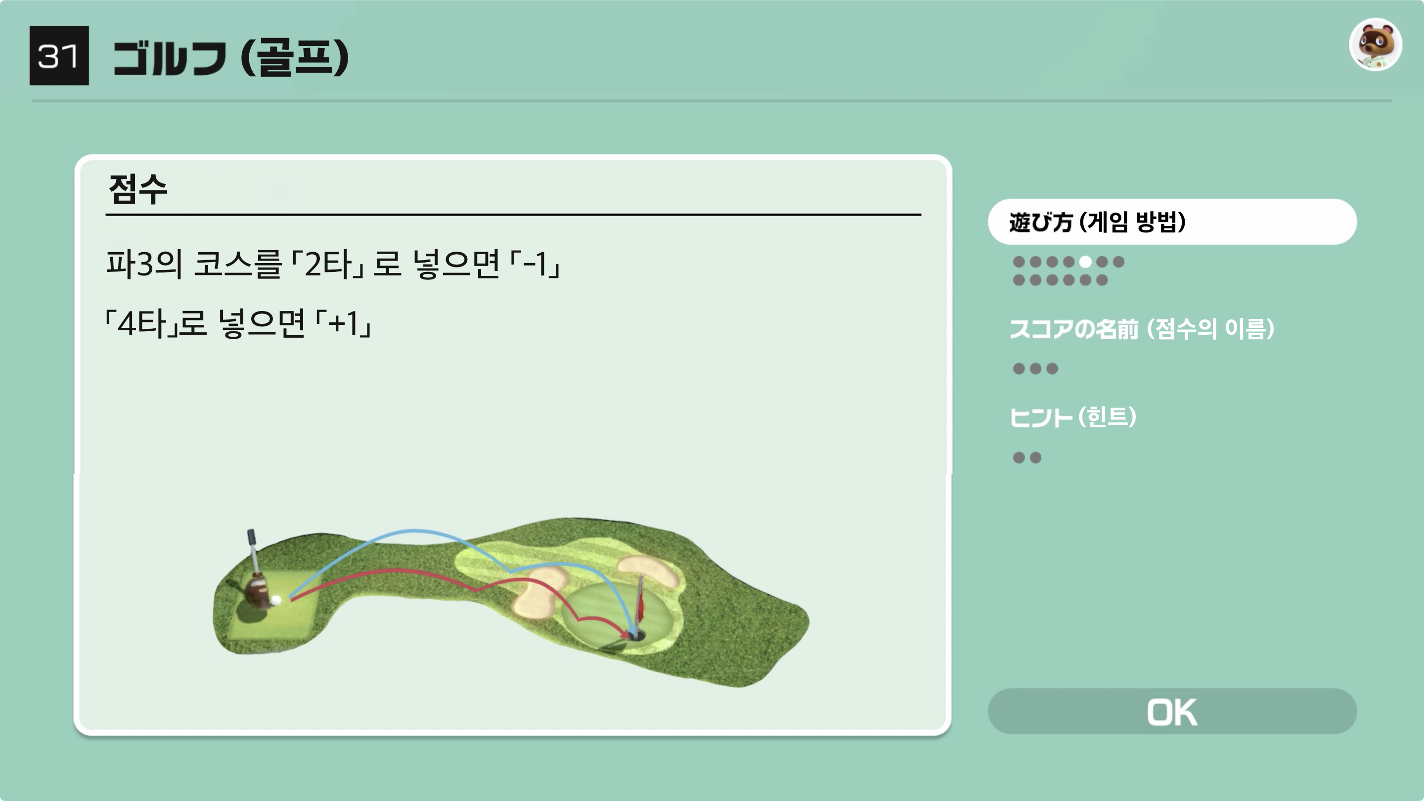 정해진 코스 수를 플레이하여 더욱 적은 합계 점수를 노리자!