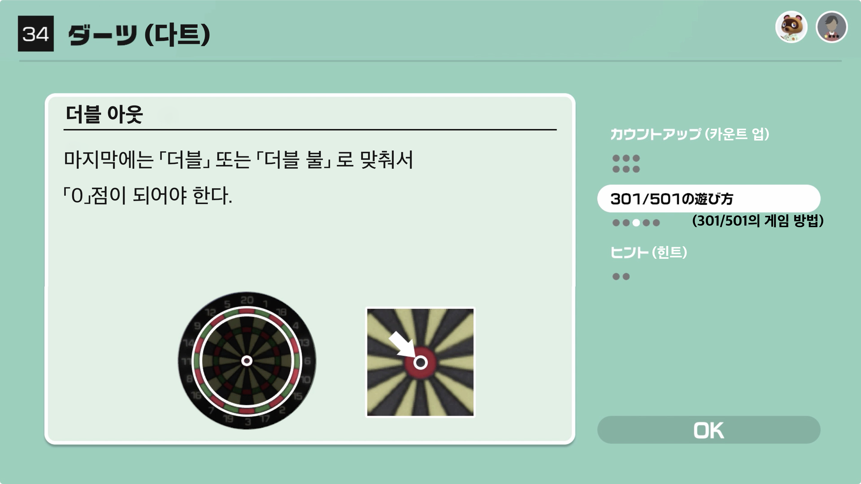 마지막에는 「더블」 또는 「더블 불」로 맞춰서 「0」점이 되어야 한다.
