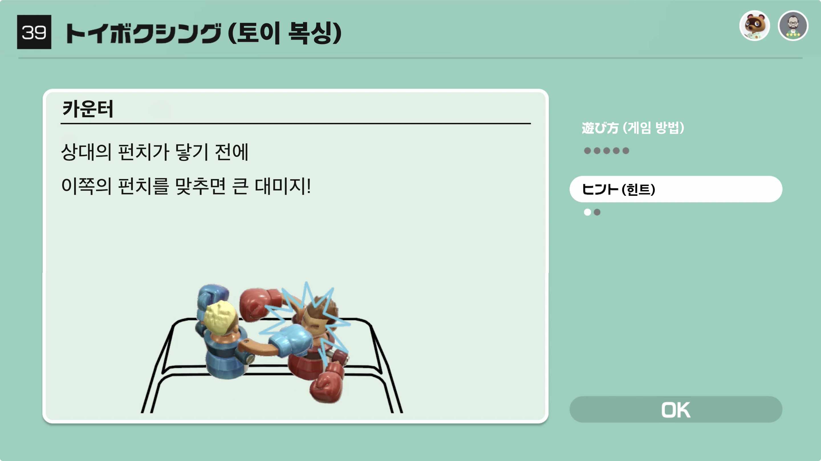 상대의 펀치가 닿기 전에 이쪽의 펀치를 맞추면 큰 대미지!