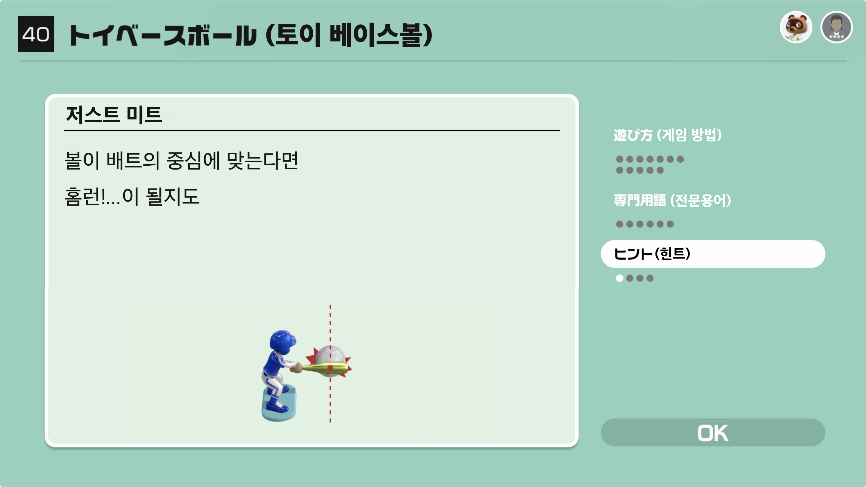 상대가 던진 공을 잘 쳐서 점수를 노리자!