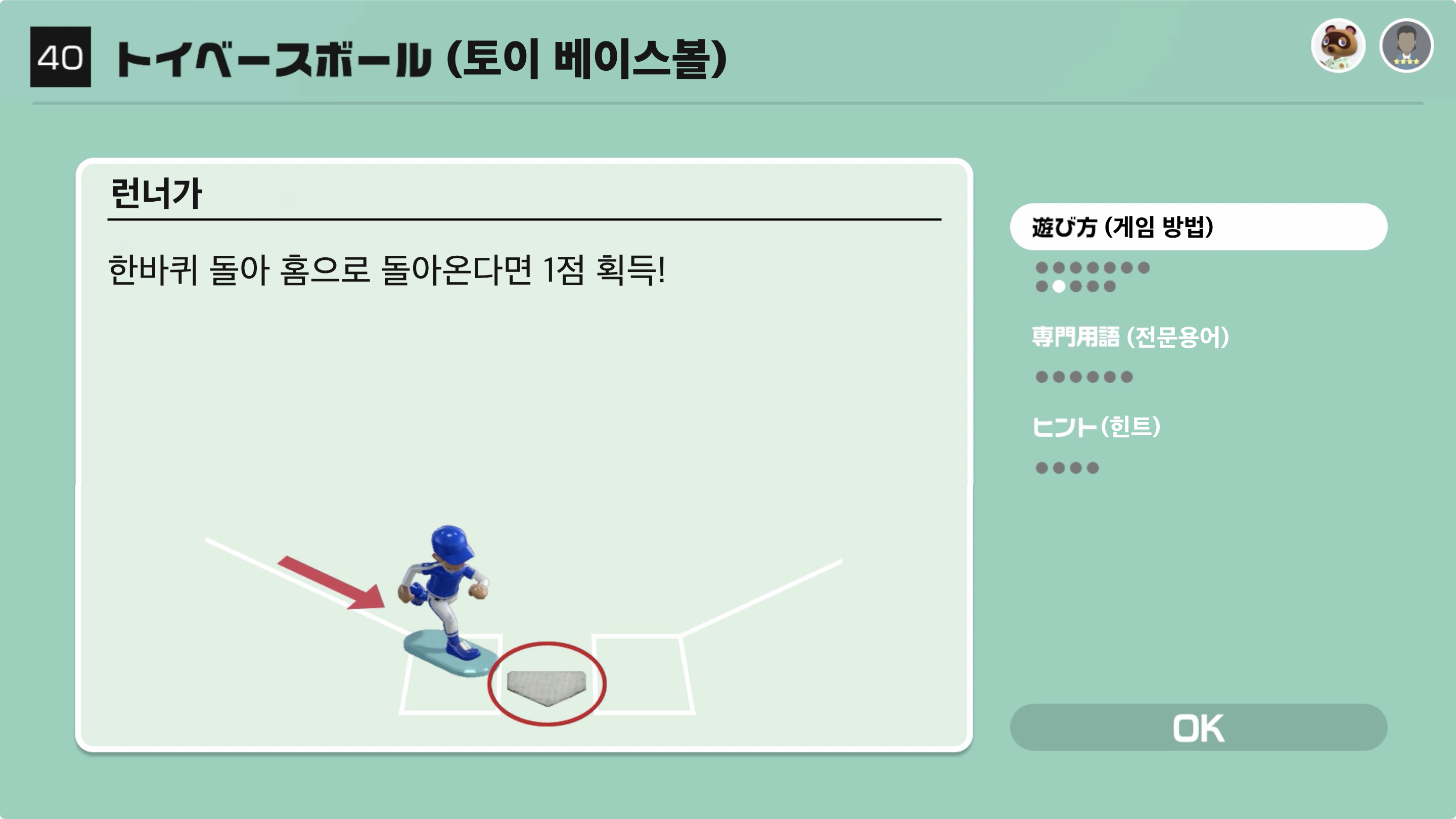 한바퀴 돌아 홈으로 돌아온다면 1점 획득!