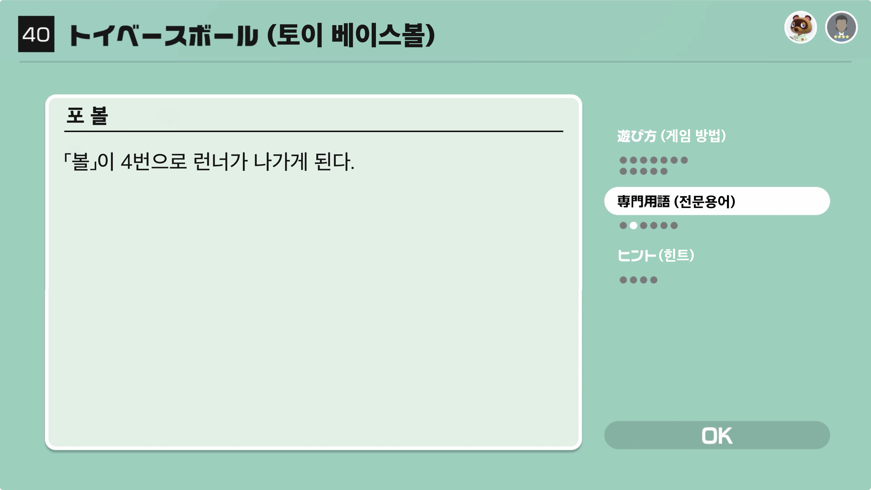 「볼」이 4번으로 런너가 나가게 된다.