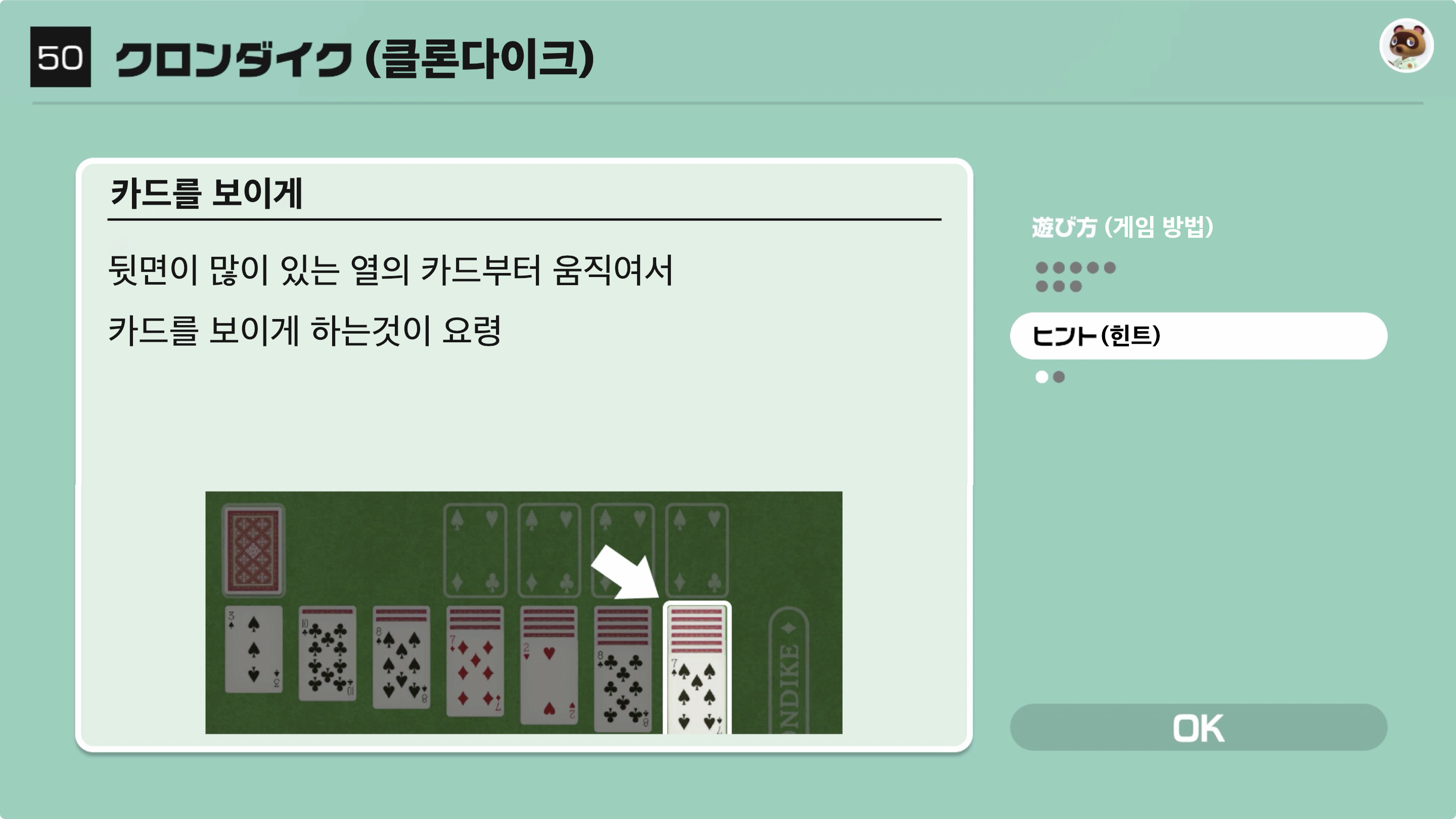 뒷면이 많이 있는 열의 카드부터 움직여서 카드를 보이게 하는 것이 요령