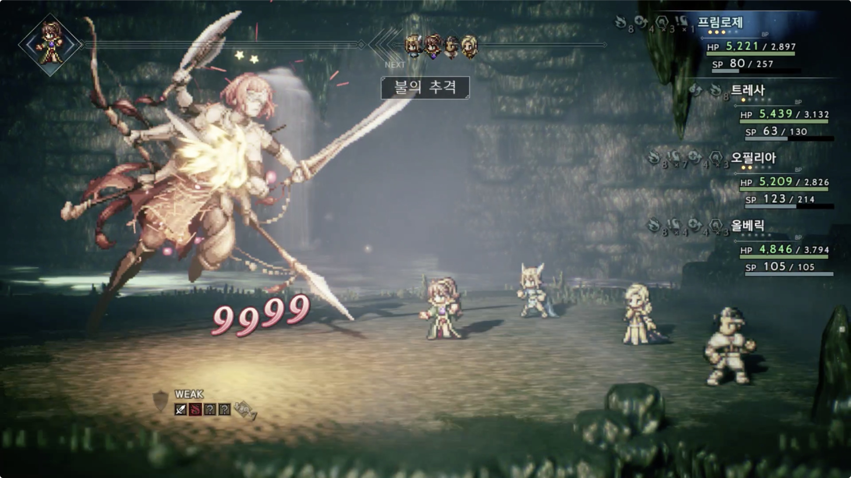 ✔︎ 연타형 공격이 많이 나오는편이니 BP 패스를 이용해 트레사에게 여유있게 확산의 룬과 긴급 회피를 쓸 수 있게 도와주자.
