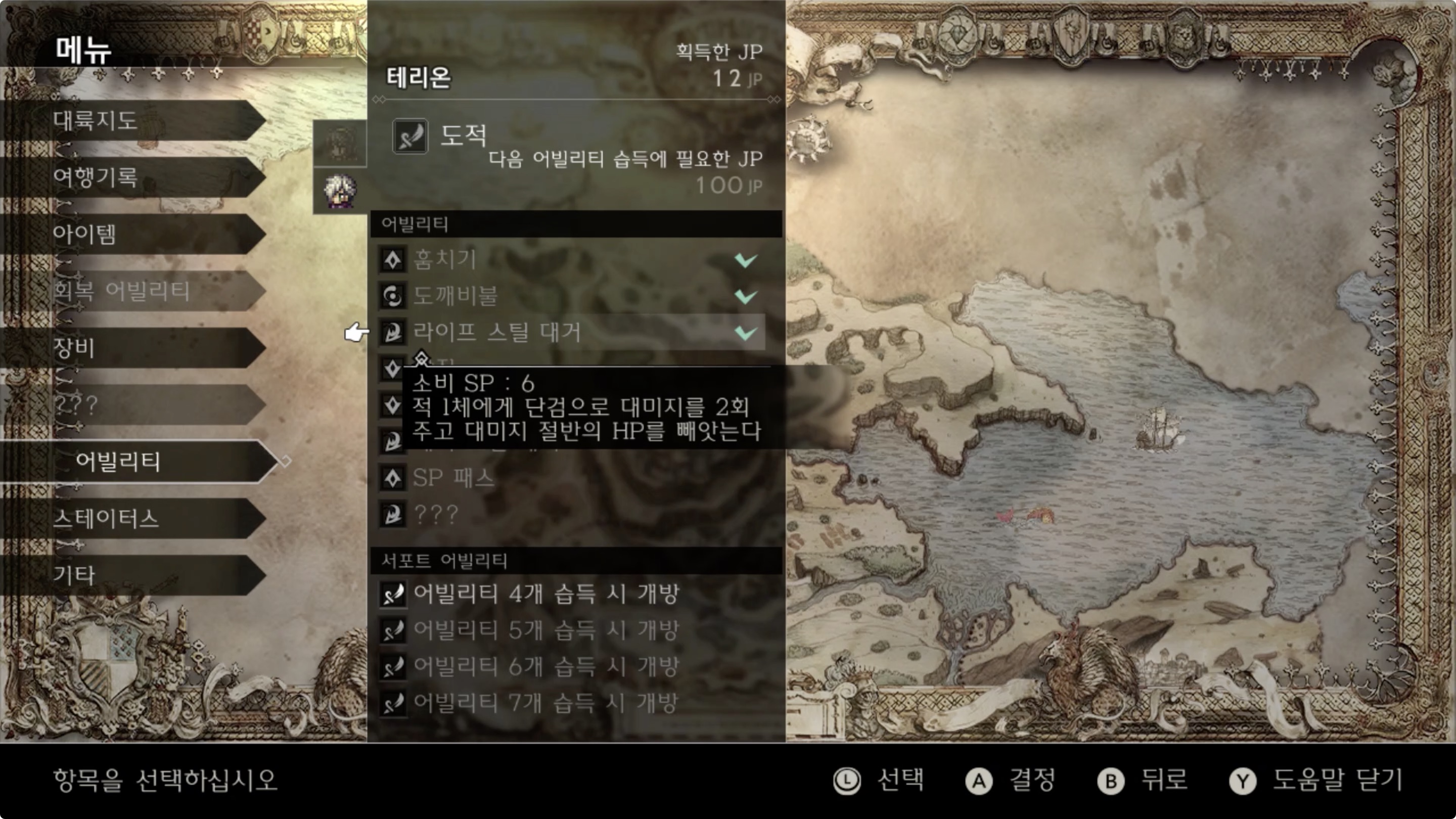 ✔︎ 전투 시작전 조금의 레벨업을 통해 테리온에게 '라이프 스틸 대거'를 배워놓는걸 추천