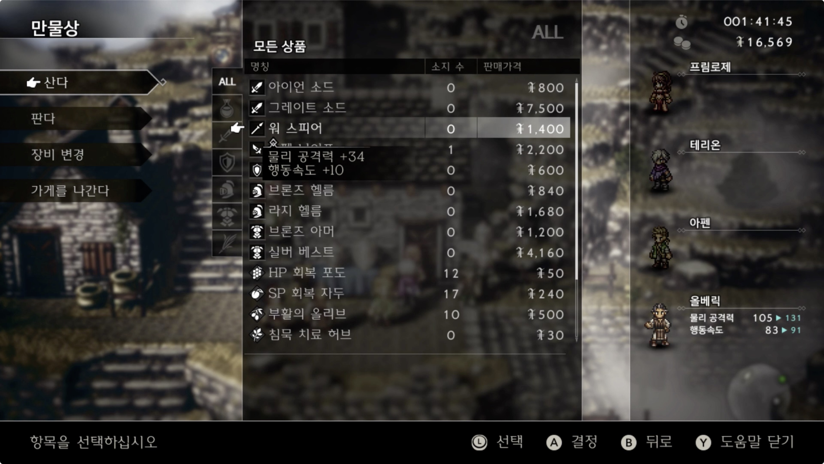 ✔︎ 마을에서 '워 스피어'를 구매해서 오는것을 추천.
