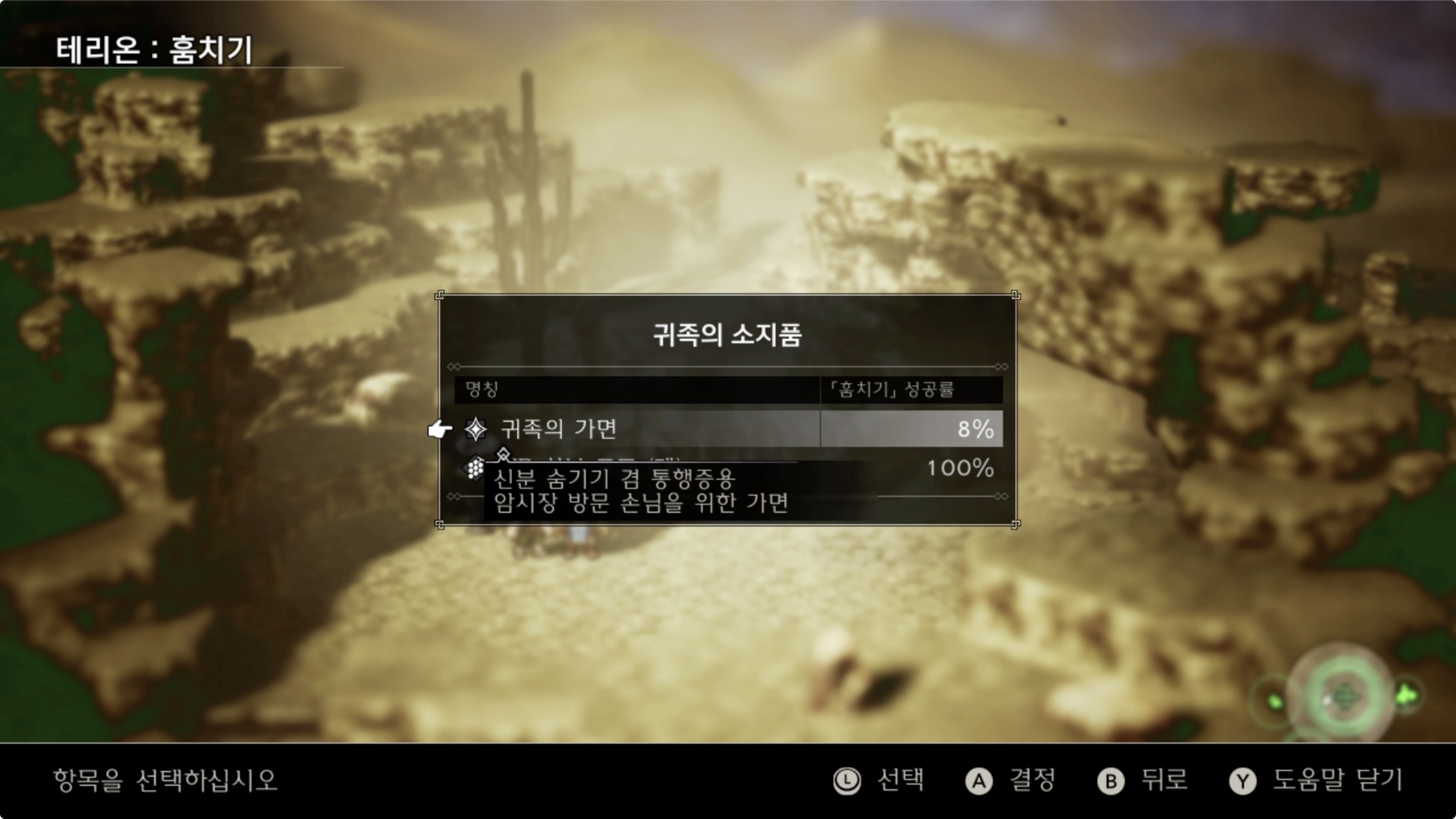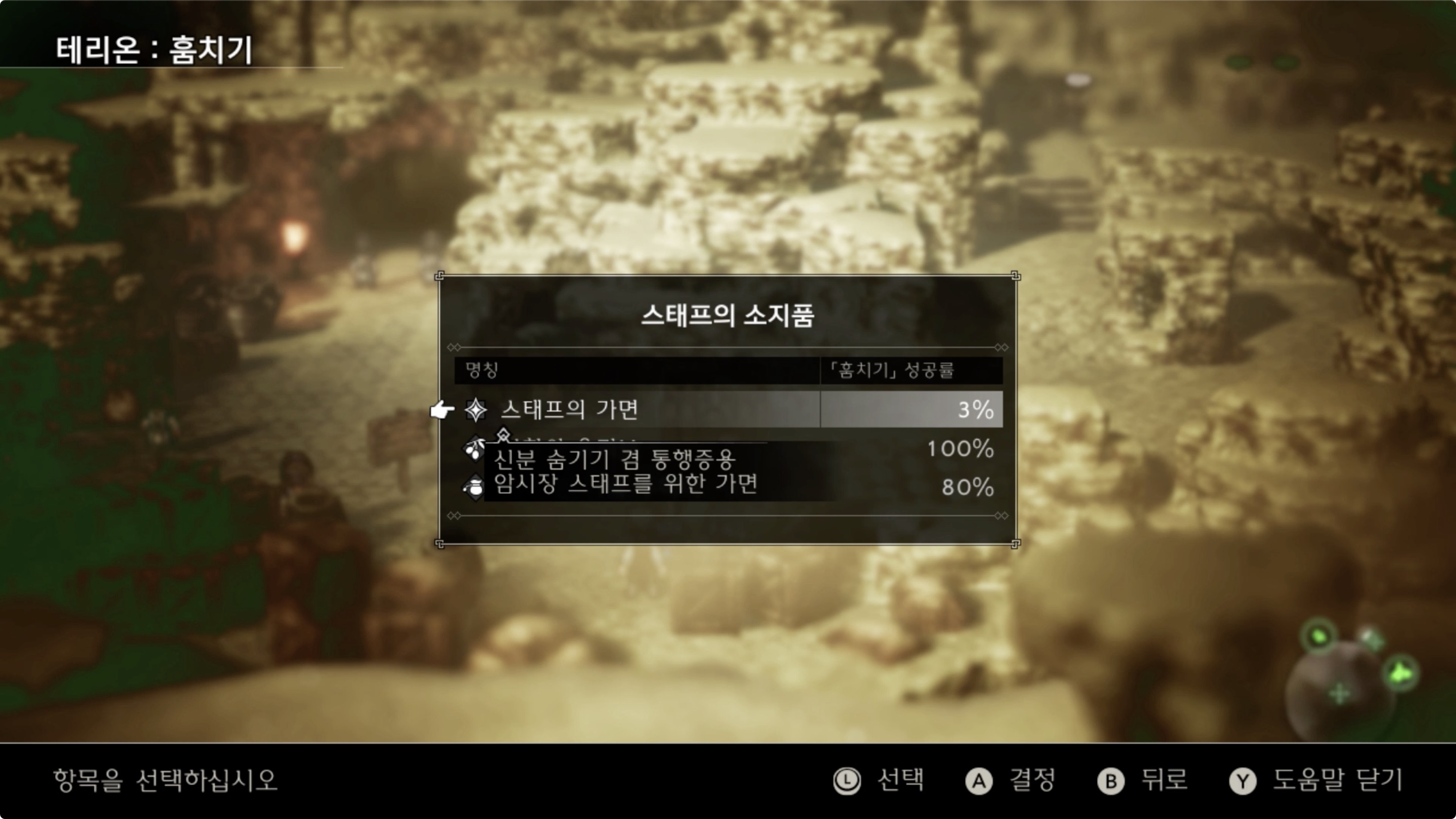 *확률은 낮지만 옆에 세이브 포인트가 있으니 저장 후, 훔치기에 실패를 하면 타이틀로 이동한 후 다시 불러들여 성공할 때까지 반복 가능하다.