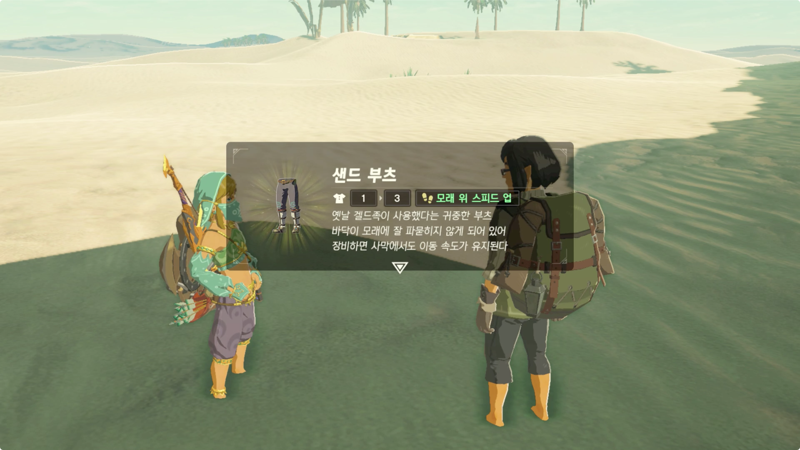 사진을 찍은후 다시 보텐사에게 대화를 걸면 샌드 부츠를 주면서 스노 부츠를 회수해 간다.