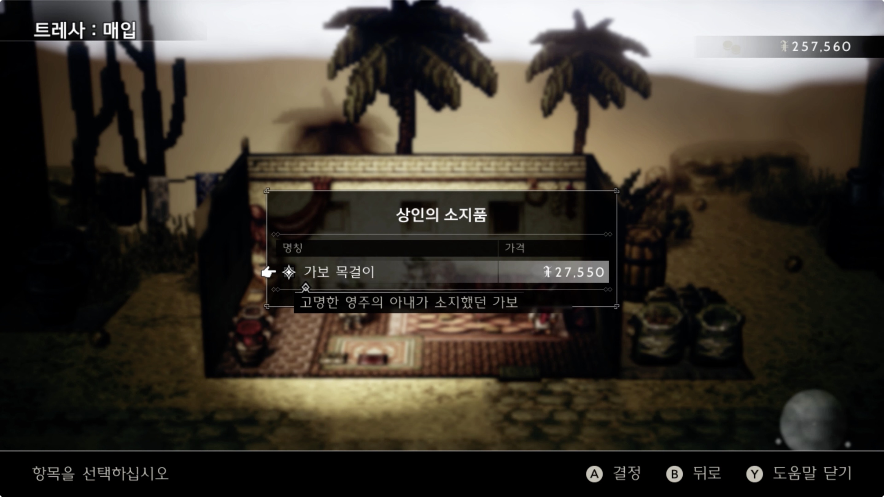 02. 중간에 있는 '상인'에게 [훔치기/매입]으로 '가보 목걸이'를 입수
