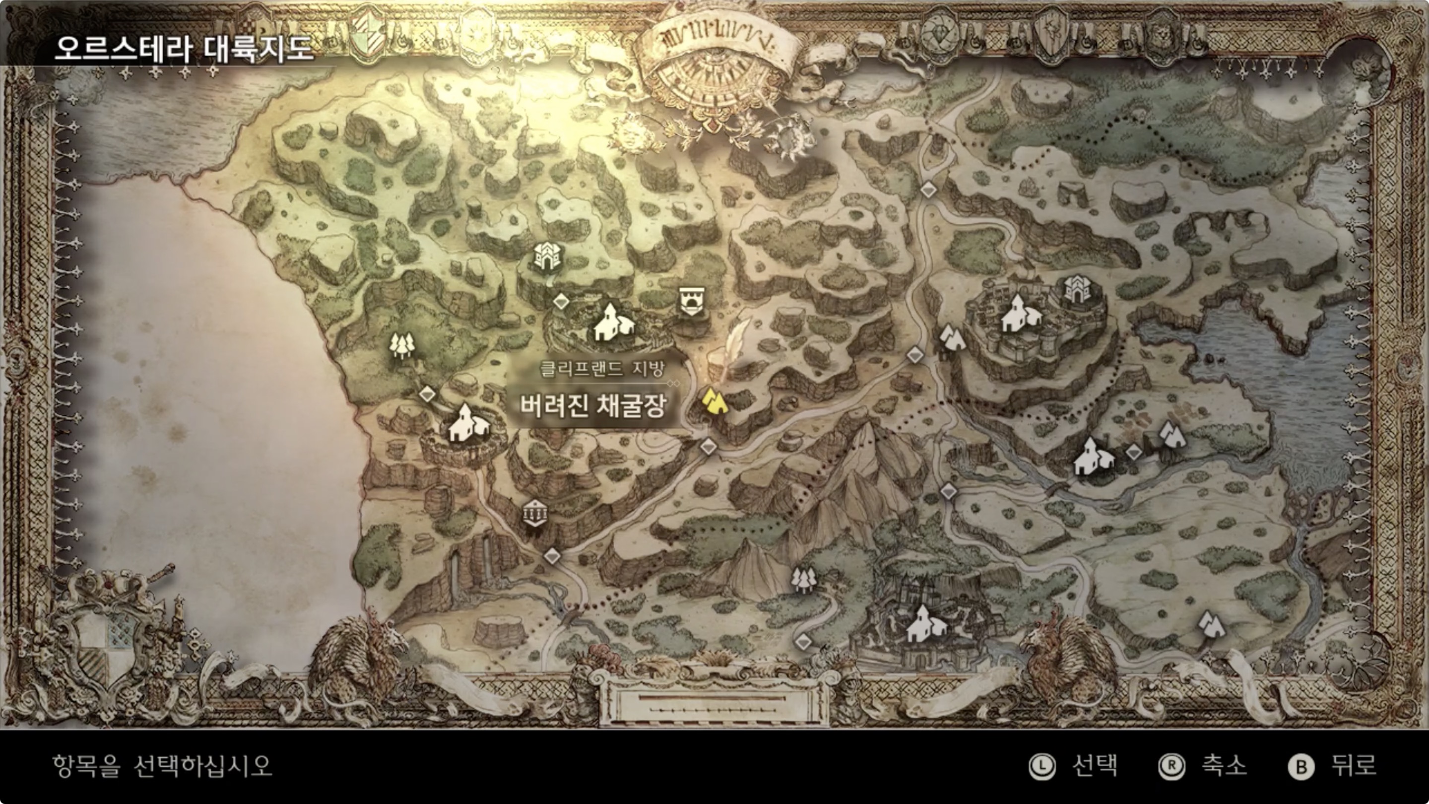 안으로 들어가게되면 「황폐한 채굴장」으로 표시이라 안내가 되고, 지도에서 확인하면 「버려진 채굴장」 으로 나오는 장소