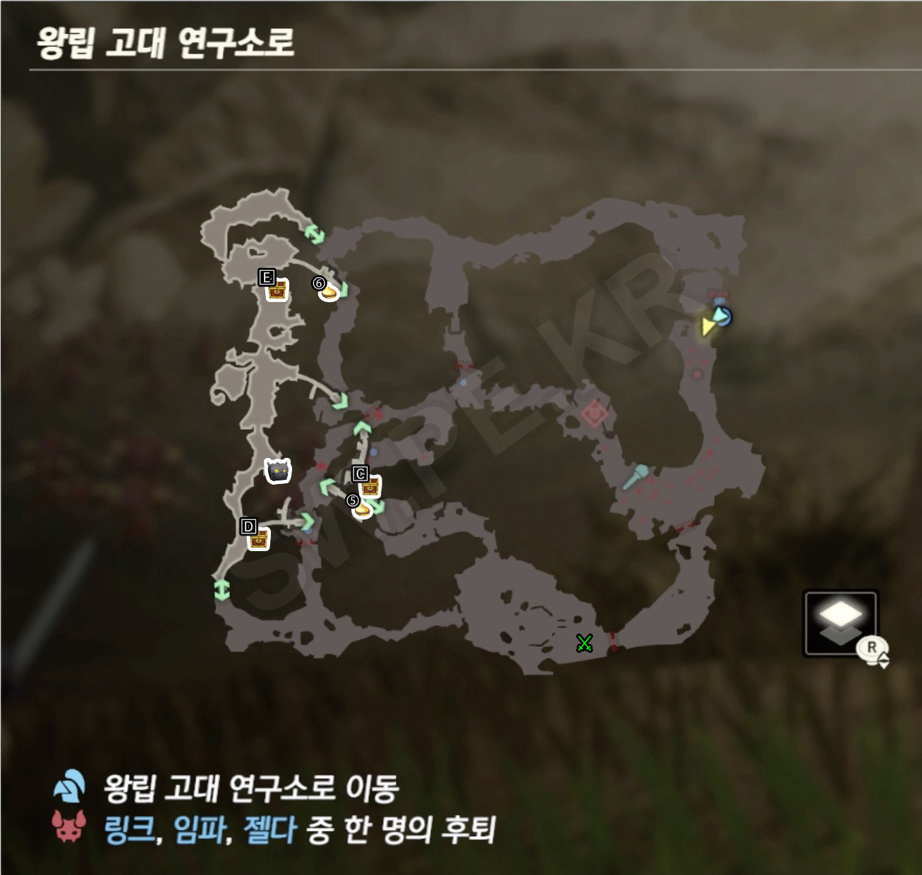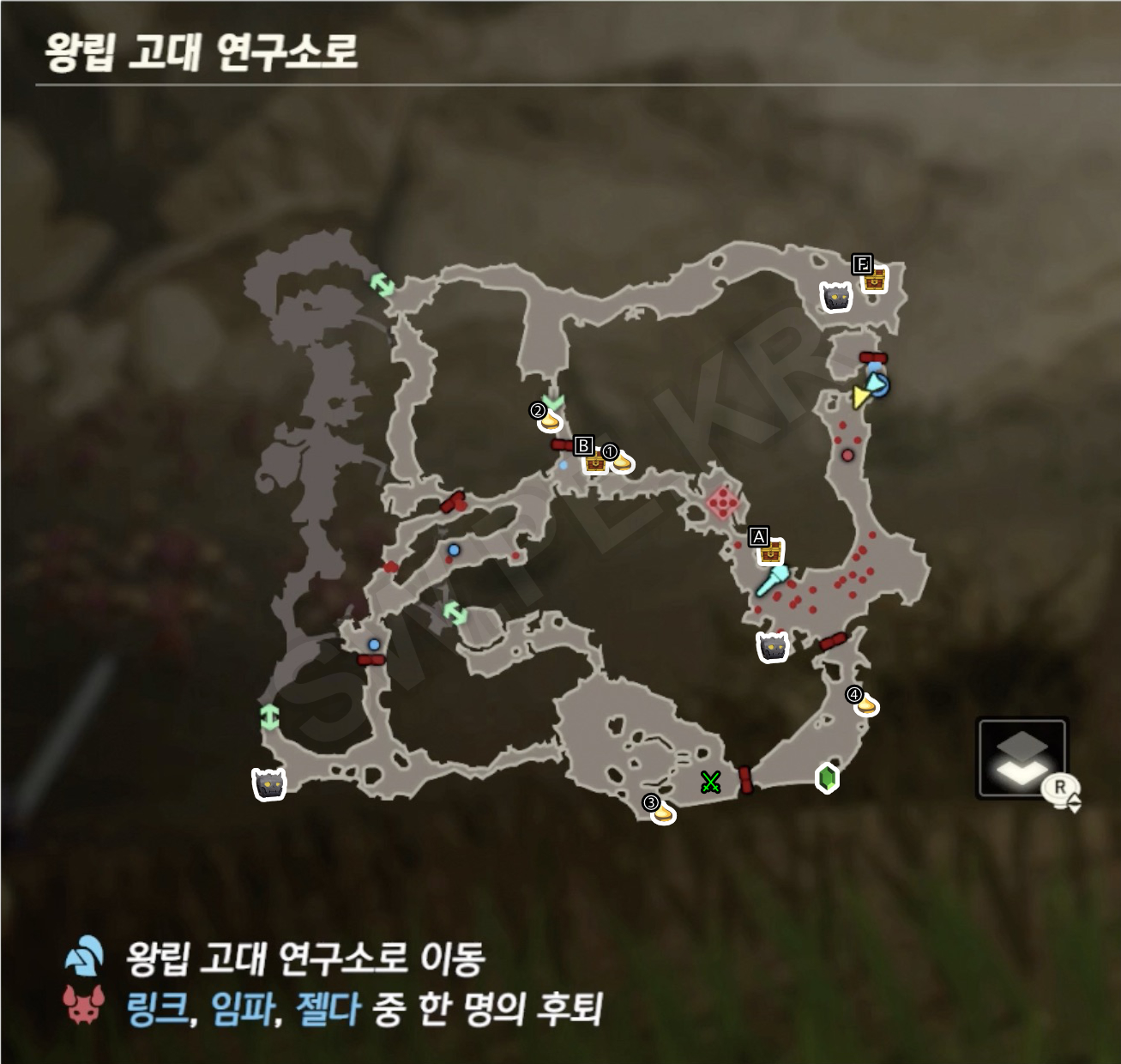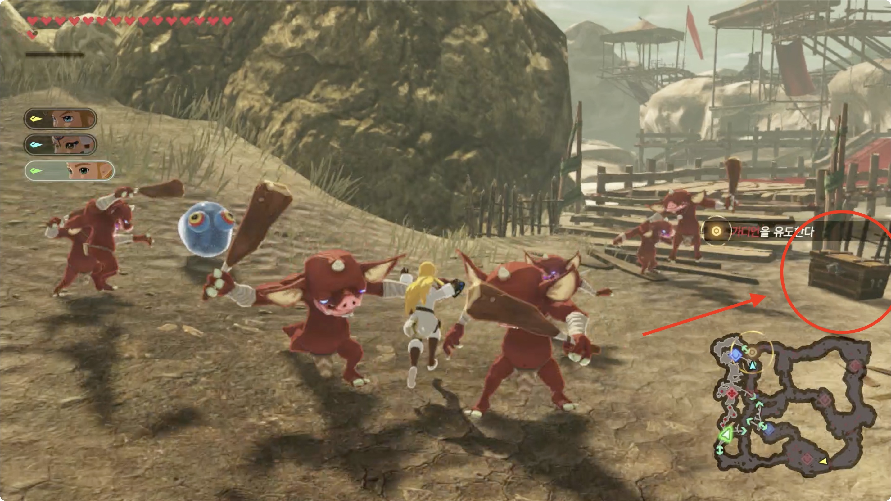 *4번 코로그가 있는 곳으로 가기위해선 남쪽의 ⚔︎ 지점에서 대장급 적을 쓰러뜨릴 필요가 있습니다.
