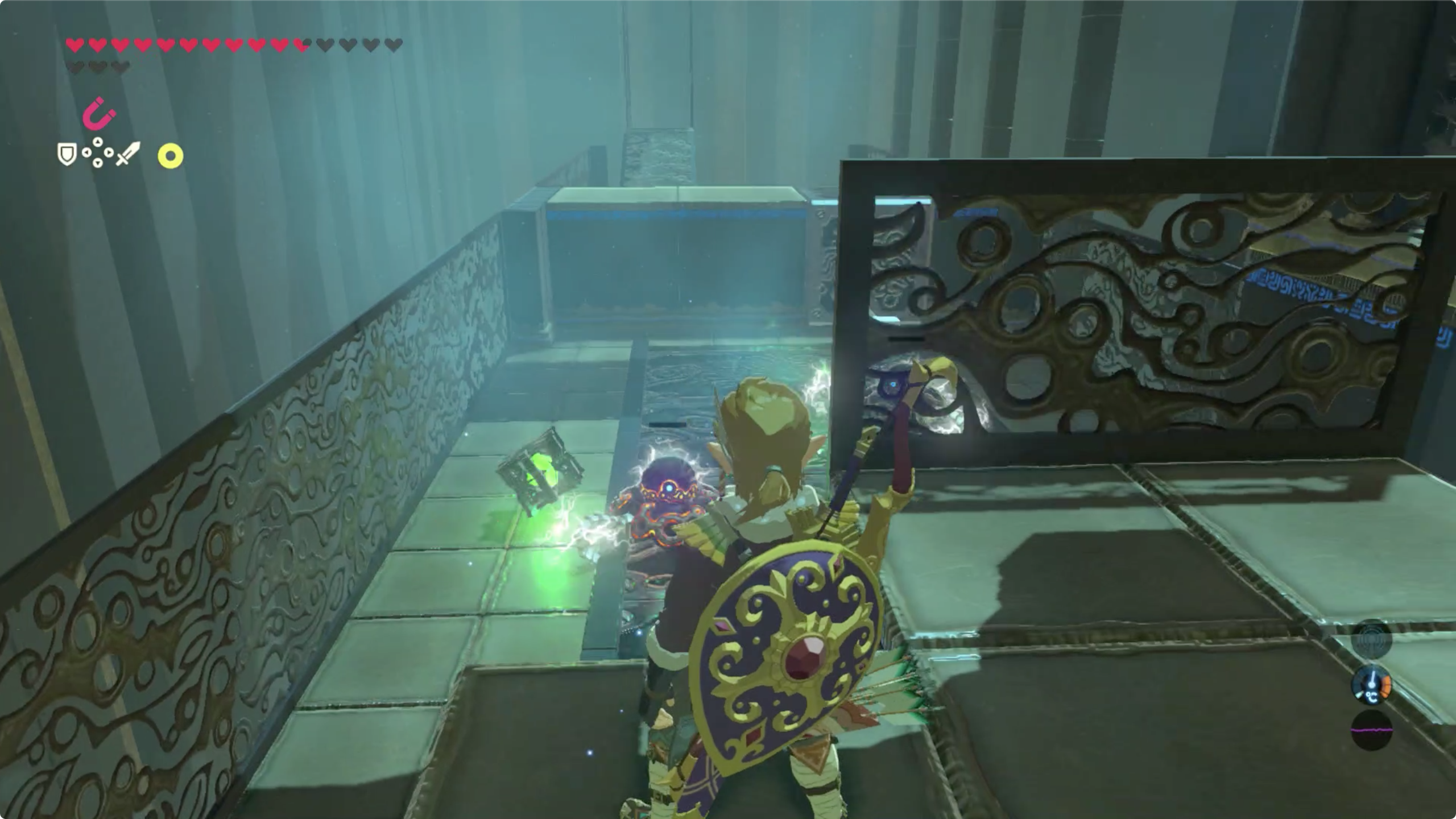 단, 주의해야할 것이 있는데 바닥이 철판으로 되어있어 바닥에 전기가 흐를 때 그 위로 올라가면 링크 또한 감전되니 주의.