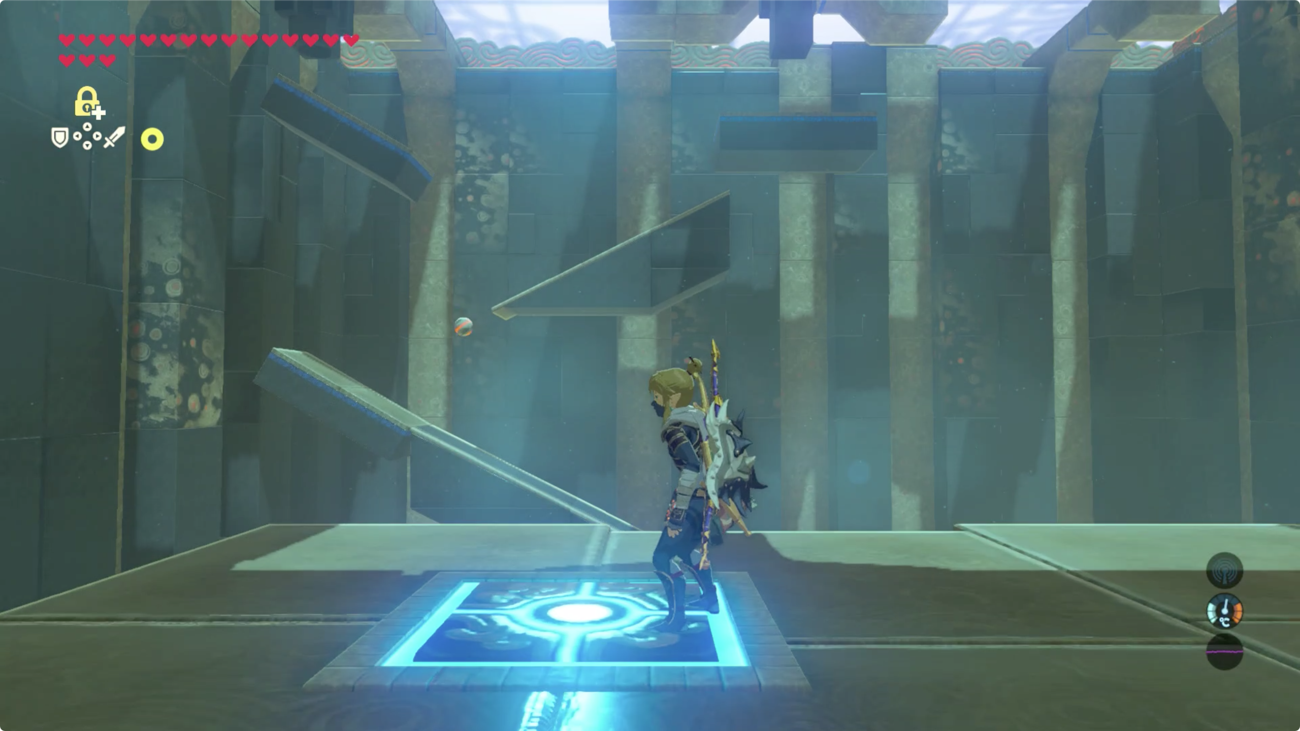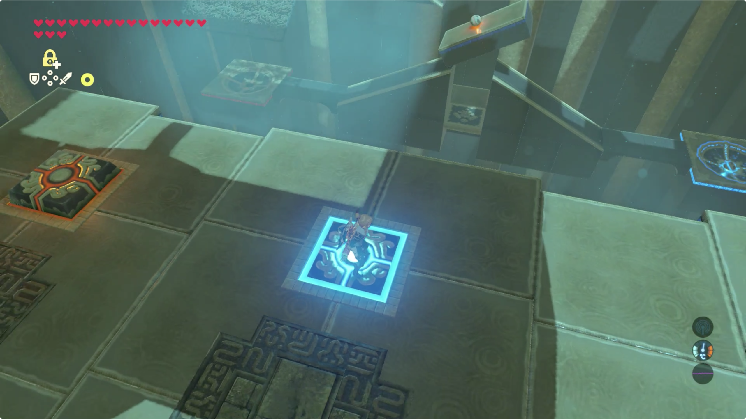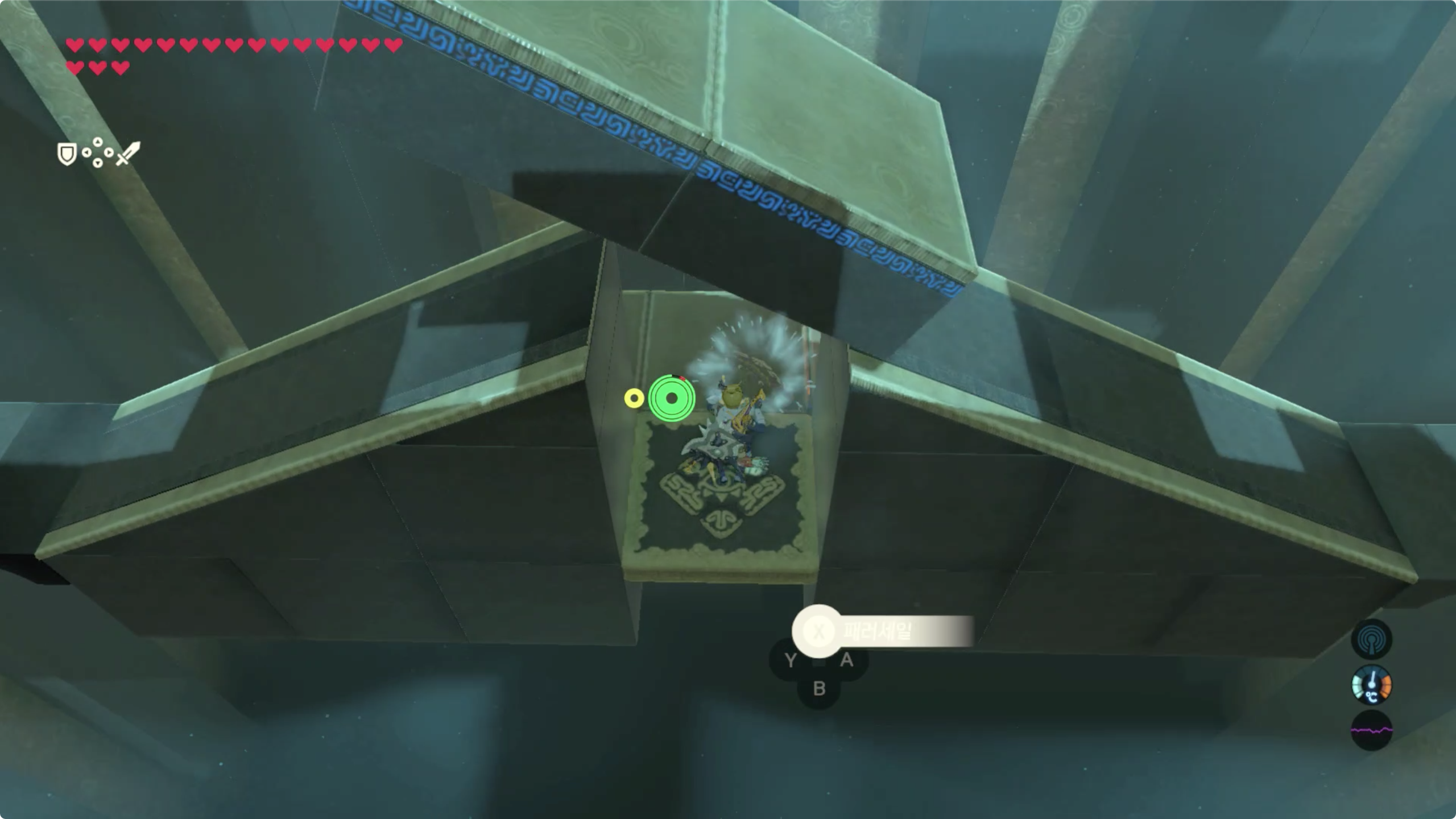 마지막으로 건너편에 보이는 벽의 사이로 패러세일을 이용해 들어가면 보물 상자가 있으며, 돌아오는건 반대쪽 스위치를 밟으면 발판이 움직여 입구까지 데려다 준다.