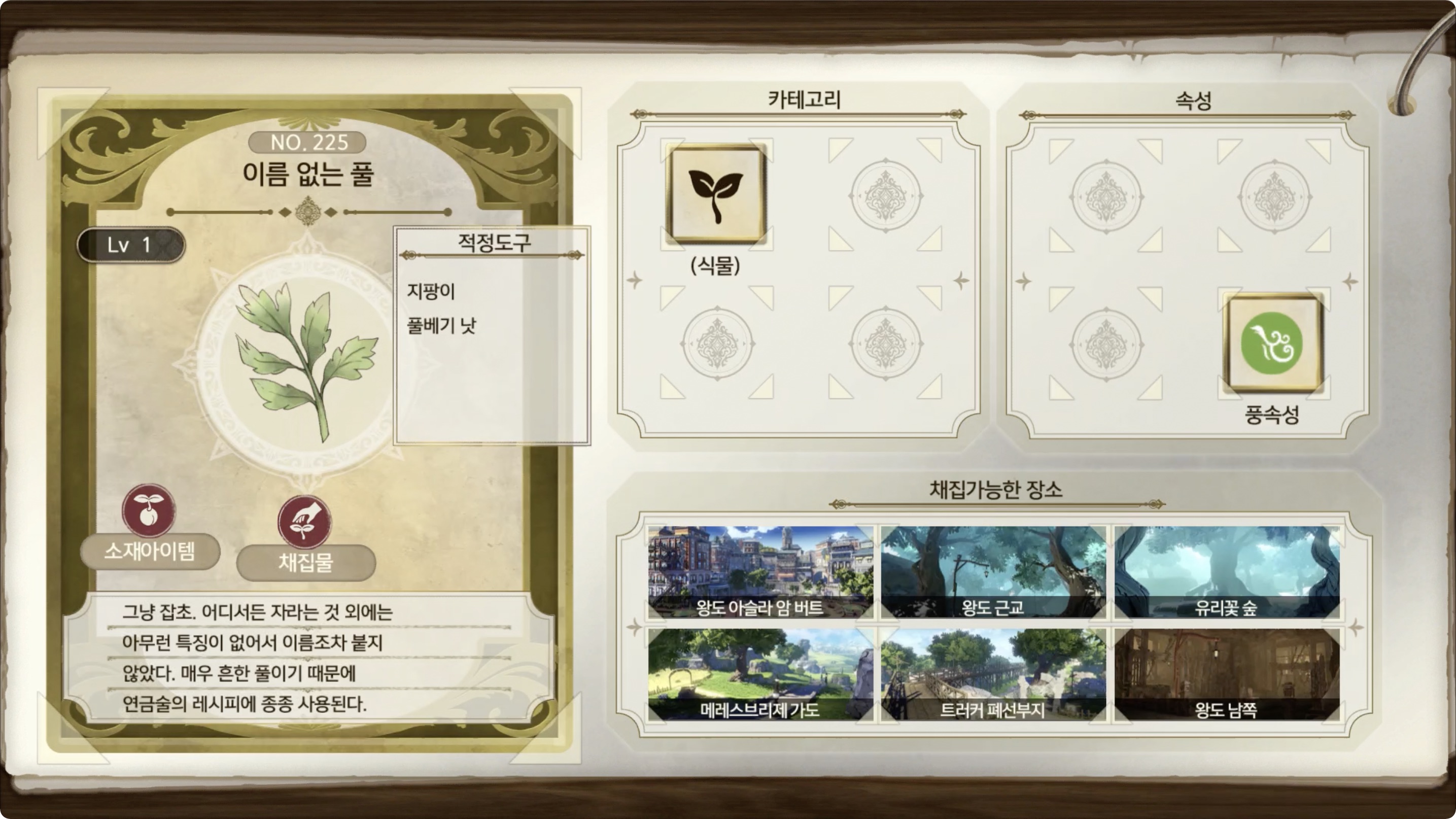 라이자의 아틀리에 2 - 아이템 도감 NO.225 이름 없는 풀