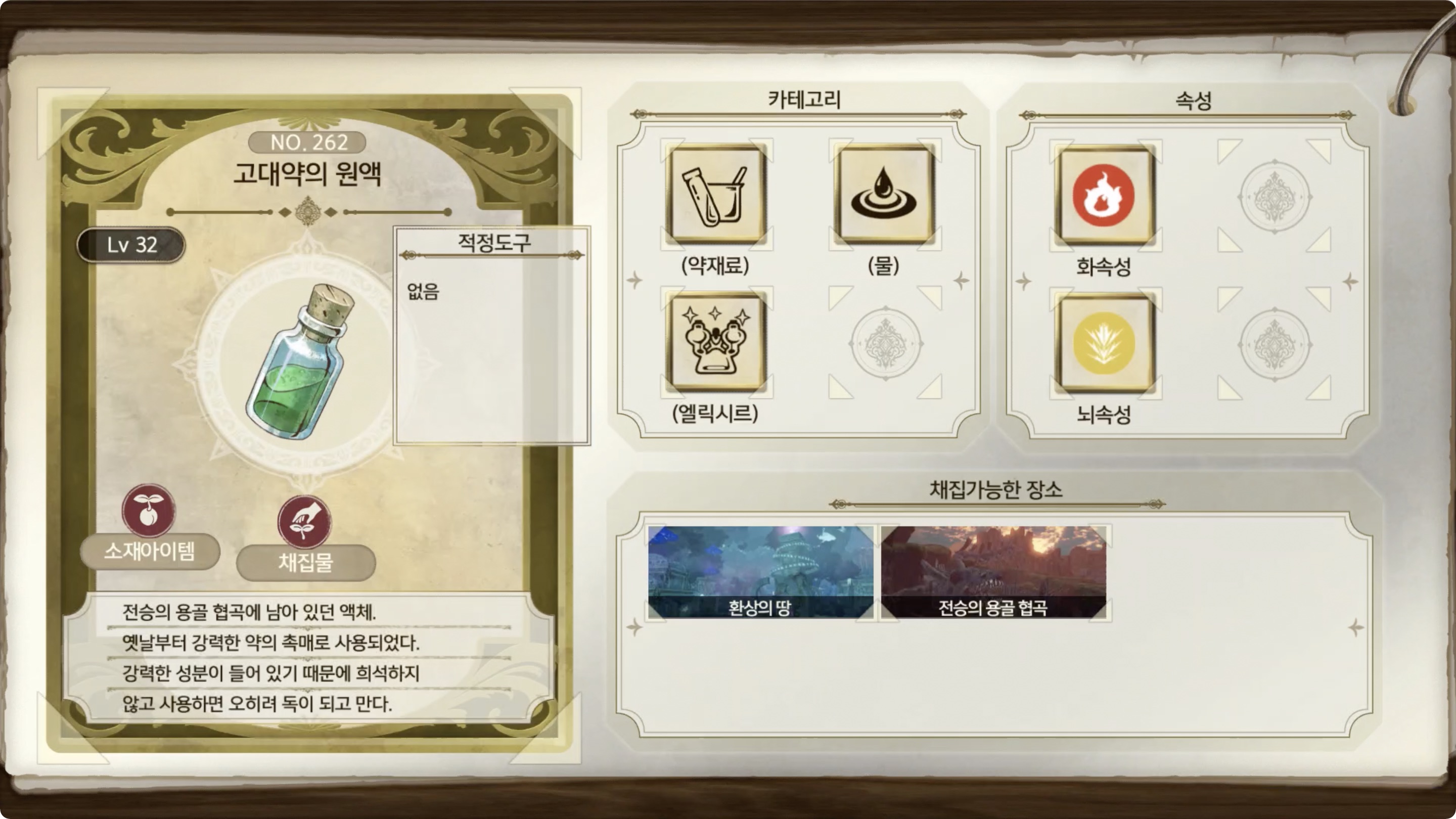 카테고리 : (약재료), (물), (엘릭시르)