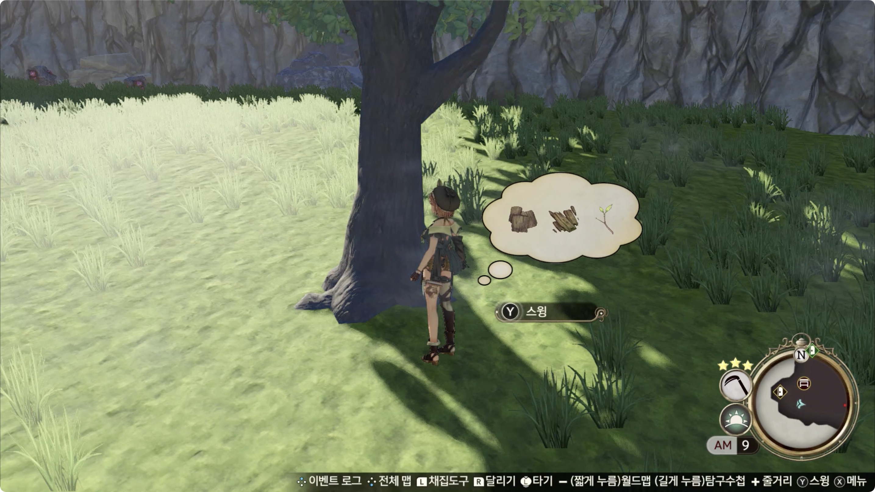 나무를 풀베기 낫으로 스윙 (풀베기낫 Lv2)