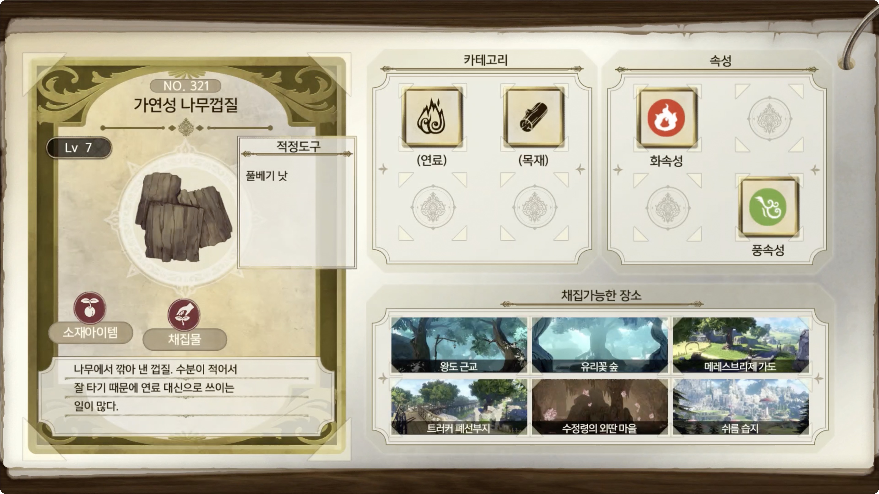 라이자의 아틀리에 2 - 아이템 도감 NO.321 가연성 나무껍질