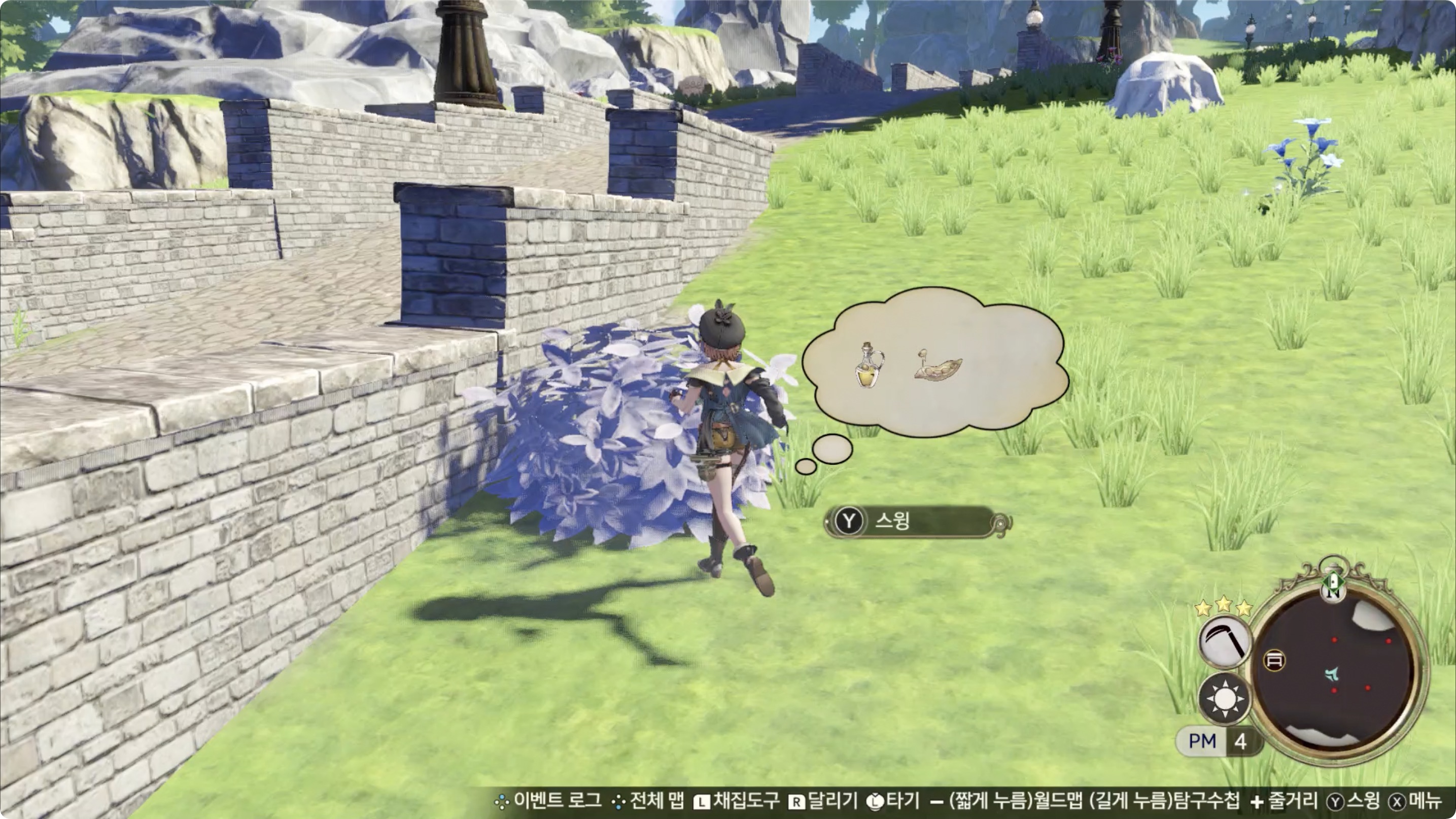 입구 근방의 수풀을 풀베기낫(Lv2)으로 스윙