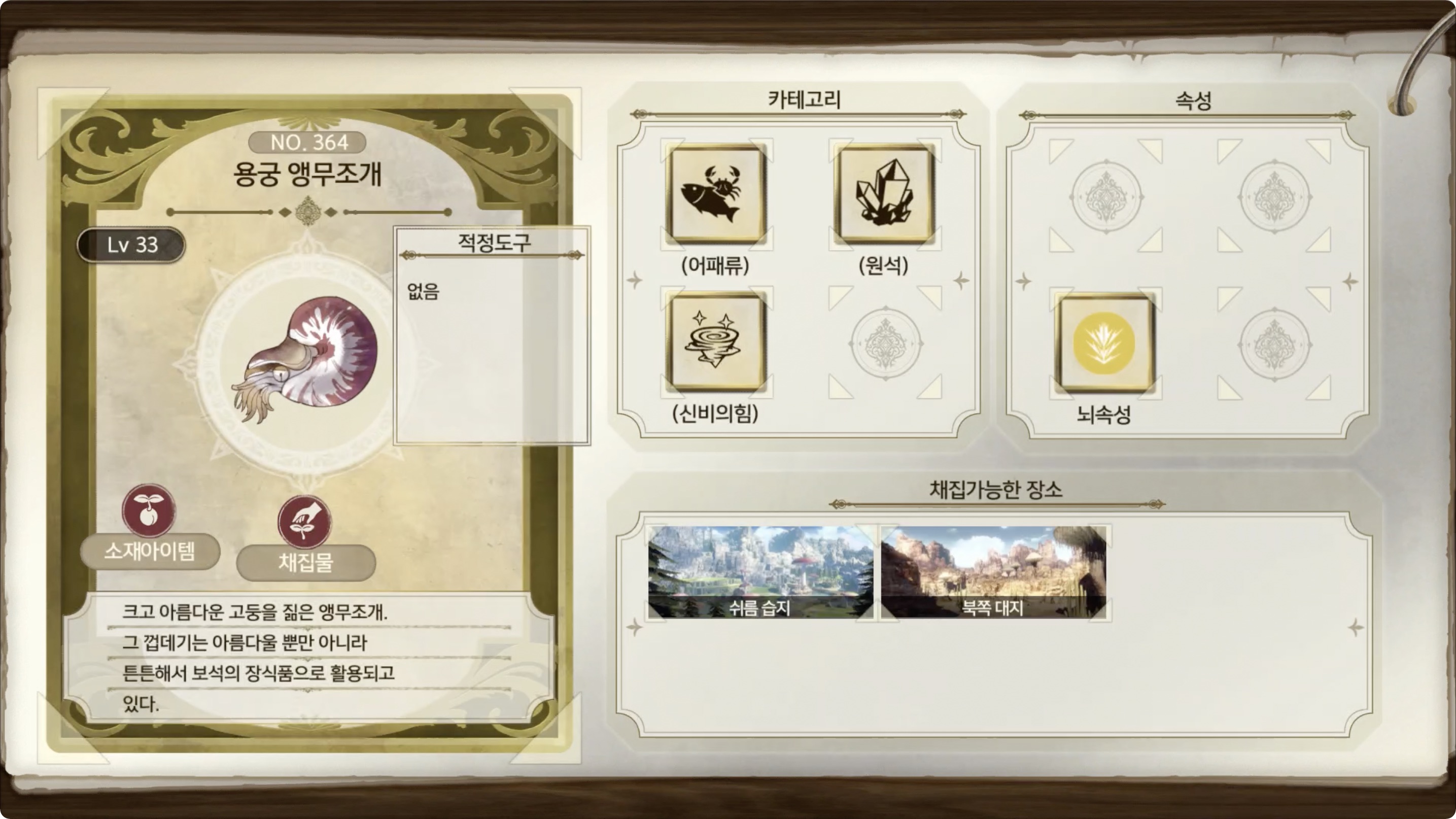 | 라이자의 아틀리에 2 - 아이템 도감 NO.360 예쁜 조개껍질 (0) | 2021.01.01 |