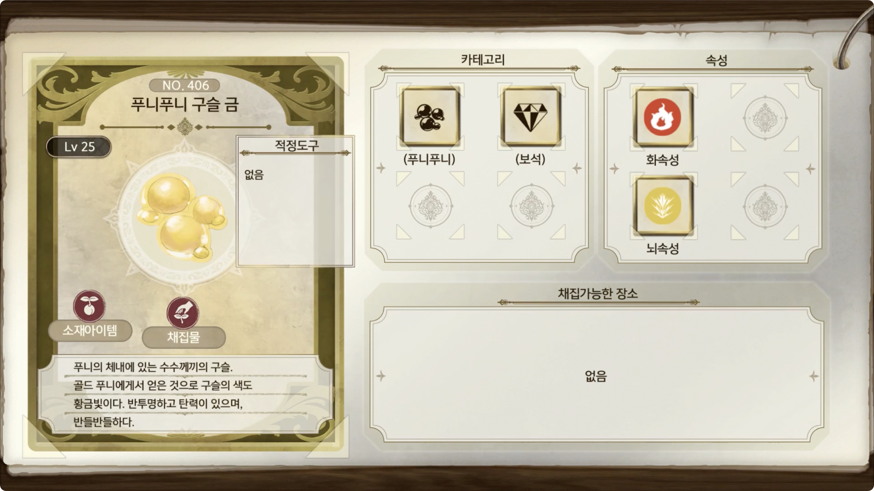라이자의 아틀리에 2 - 아이템 도감 NO.406 푸니푸니 구슬 금