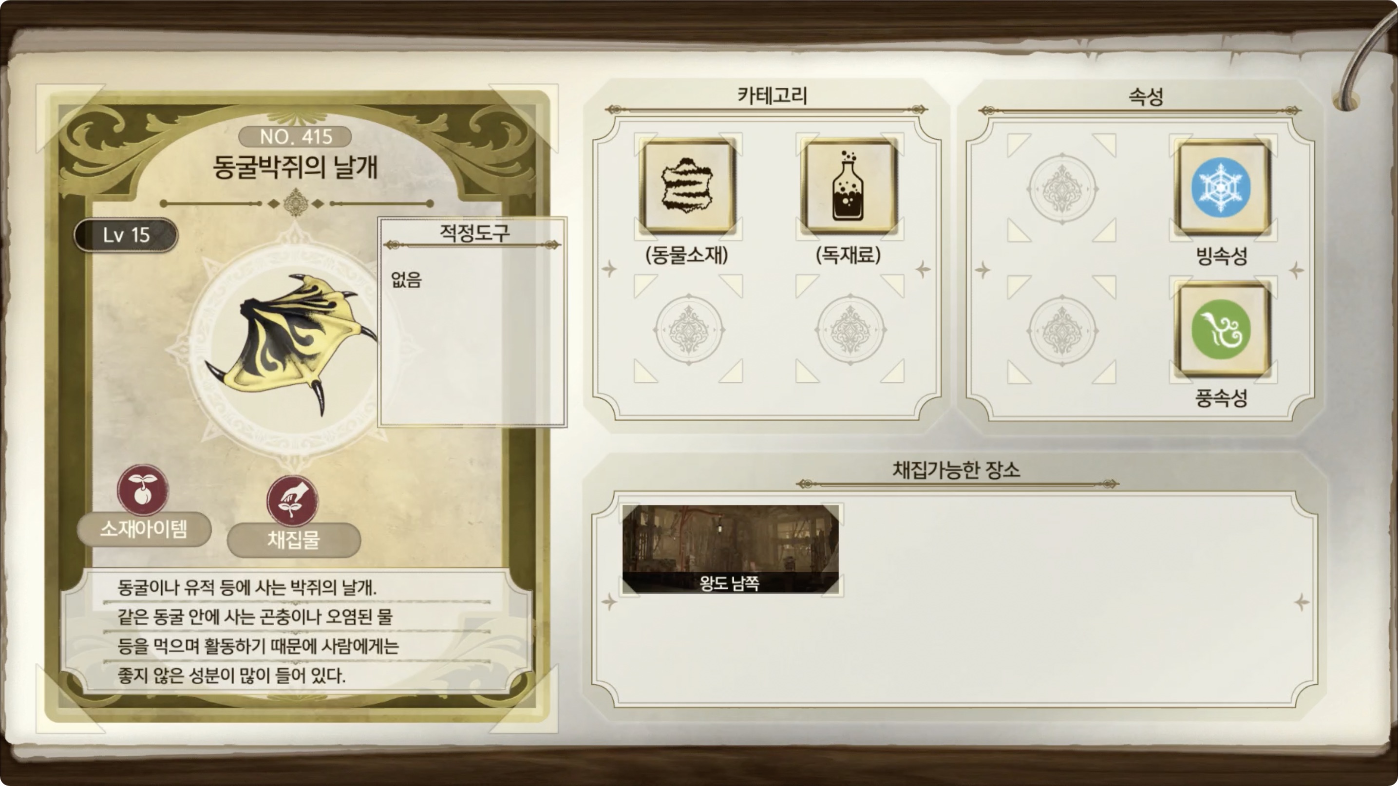 라이자의 아틀리에 2 - 아이템 도감 NO.415 동굴박쥐의 날개