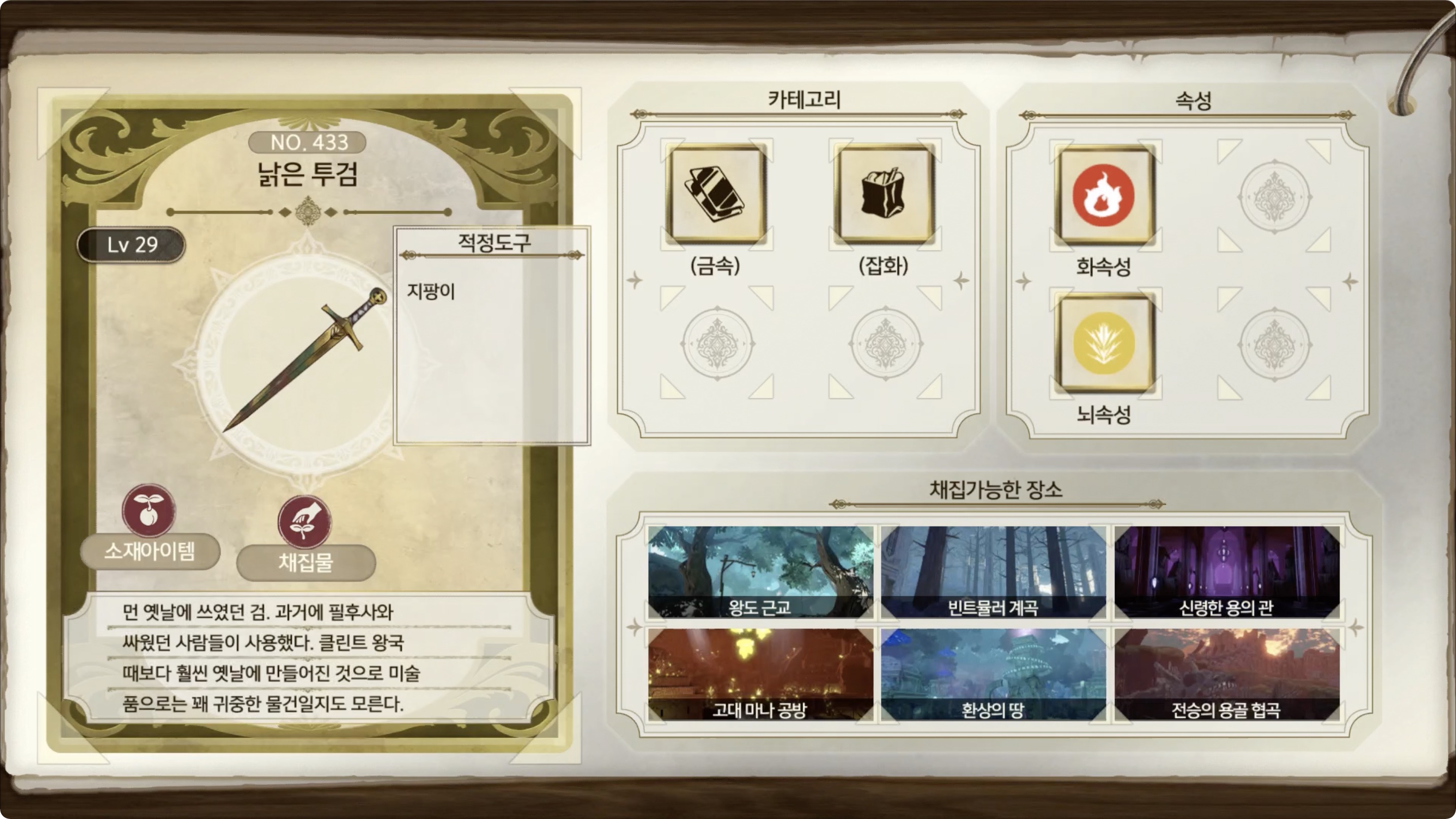 라이자의 아틀리에 2 - 아이템 도감 NO.433 낡은 투검