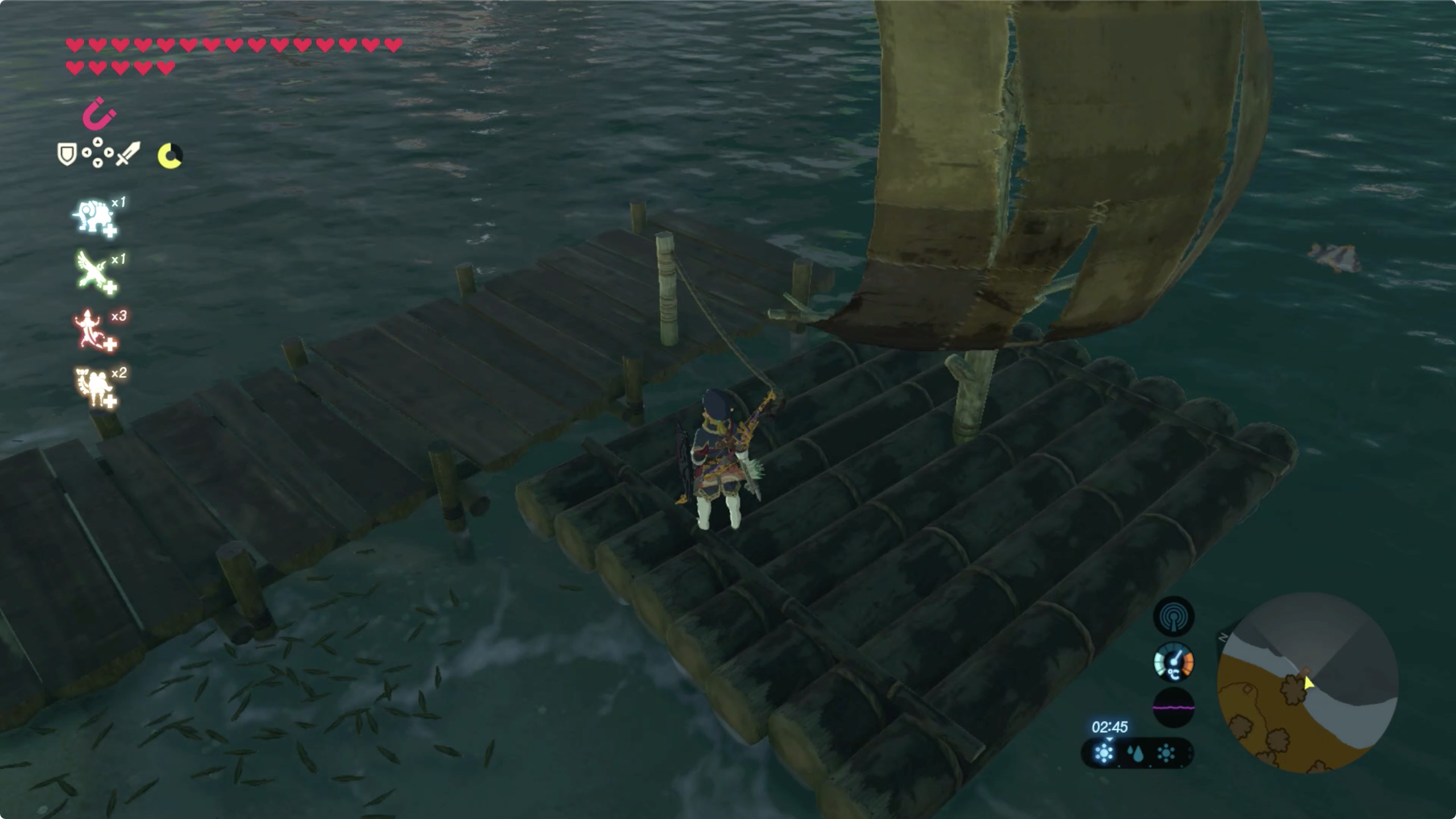 섬 중앙부나 바닷가 쪽에서 옥토 녀석들을 잡아서 풍선을 획득한 후 철판을 들어서 진행하자