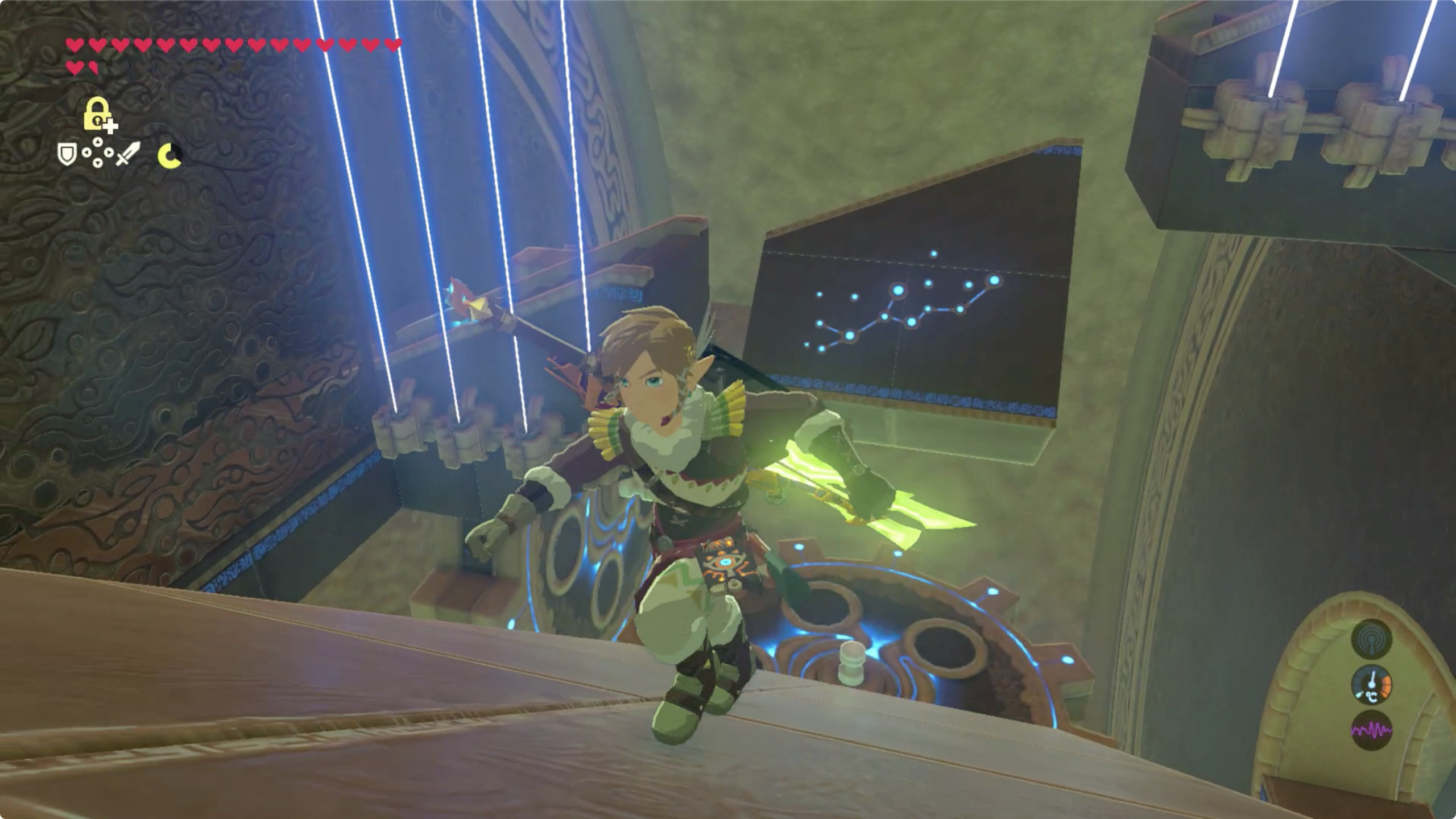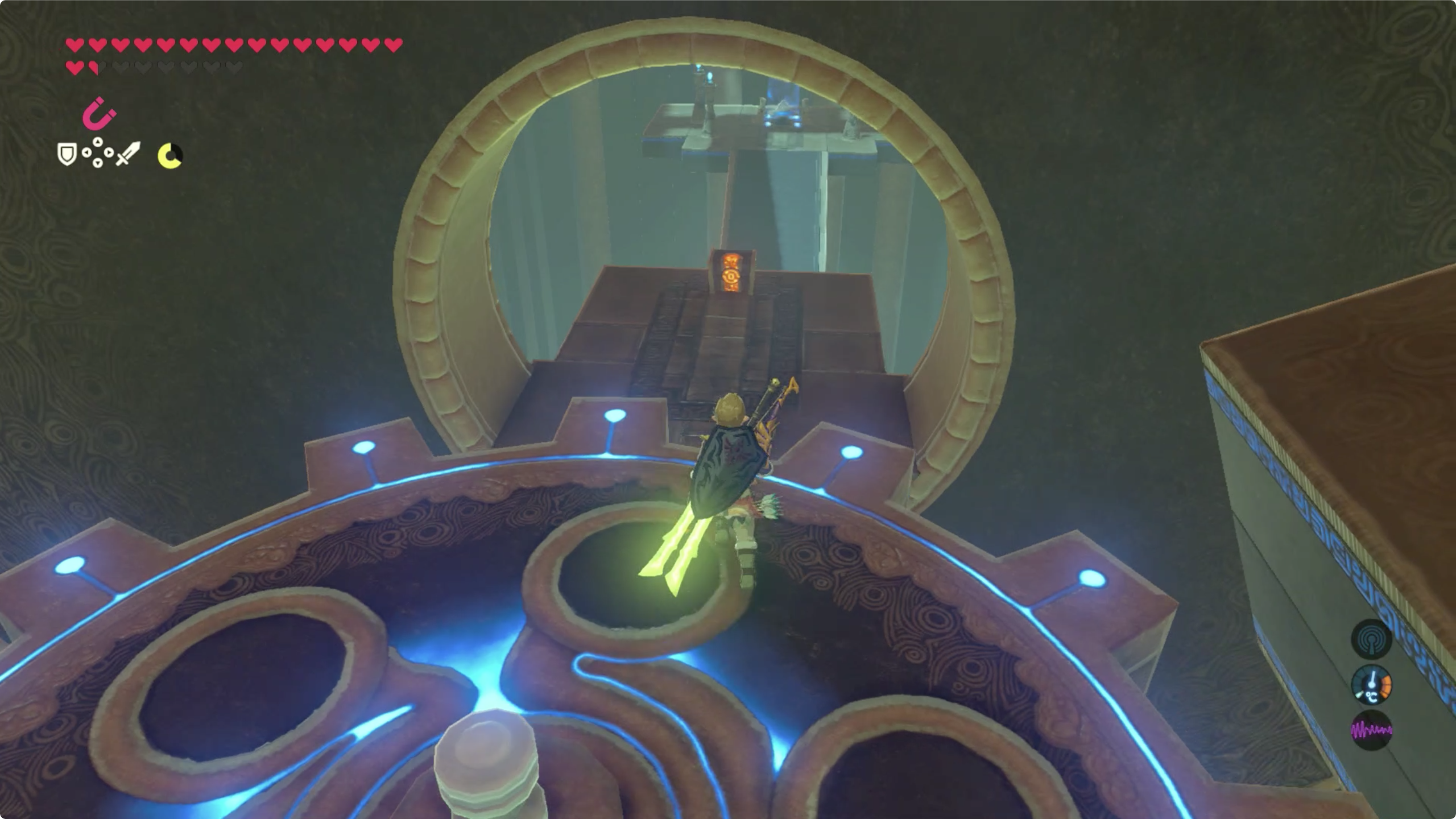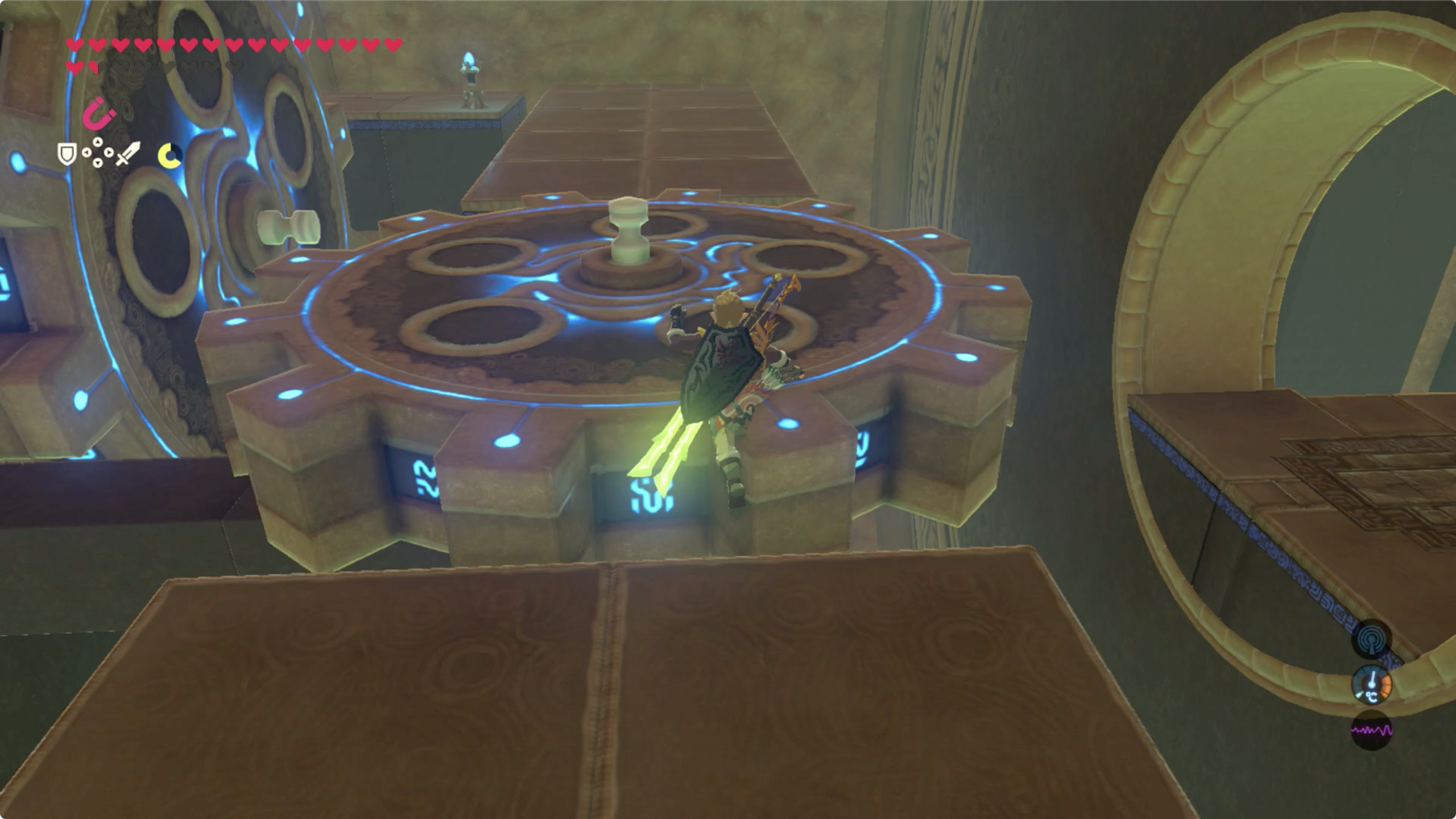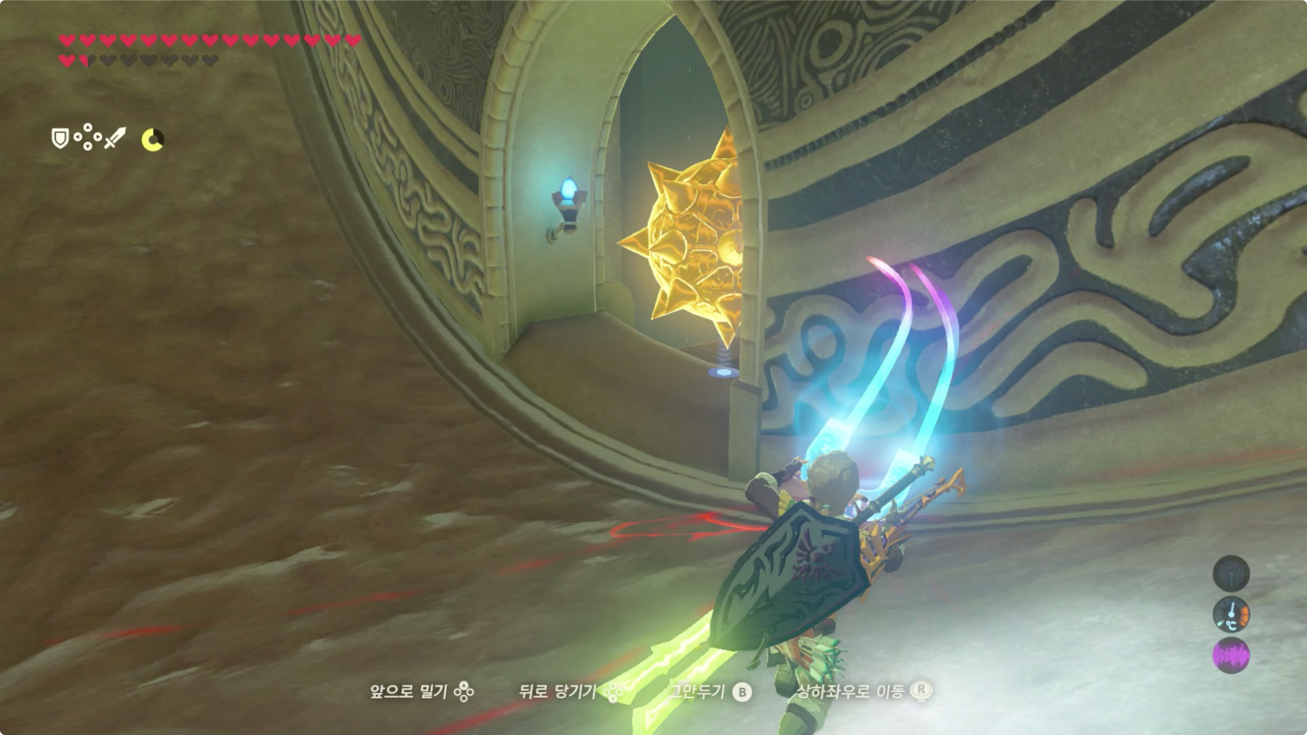 이제 중앙쯤에 서있으면 기둥이 돌면서 링크를 태우고 발판이 되어 줍니다.