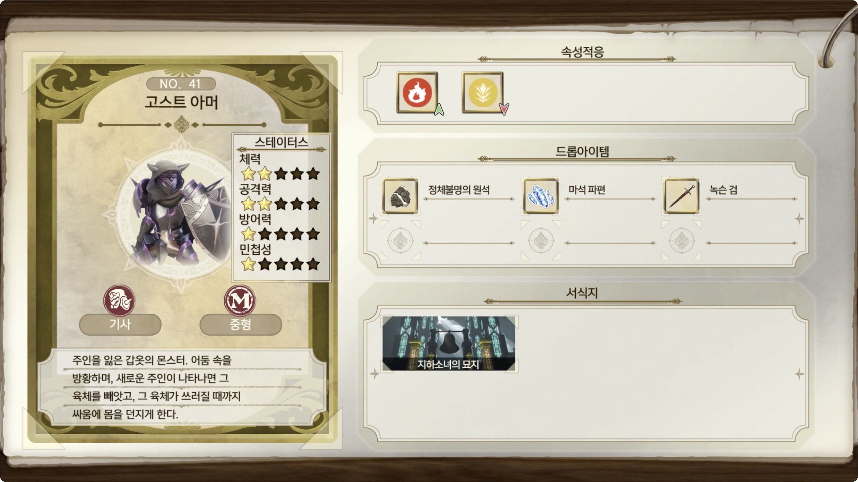 체력 : ★★☆☆☆ / 공격력 : ★★☆☆☆ / 방어력 : ★☆☆☆☆ / 민첩성 : ★☆☆☆☆