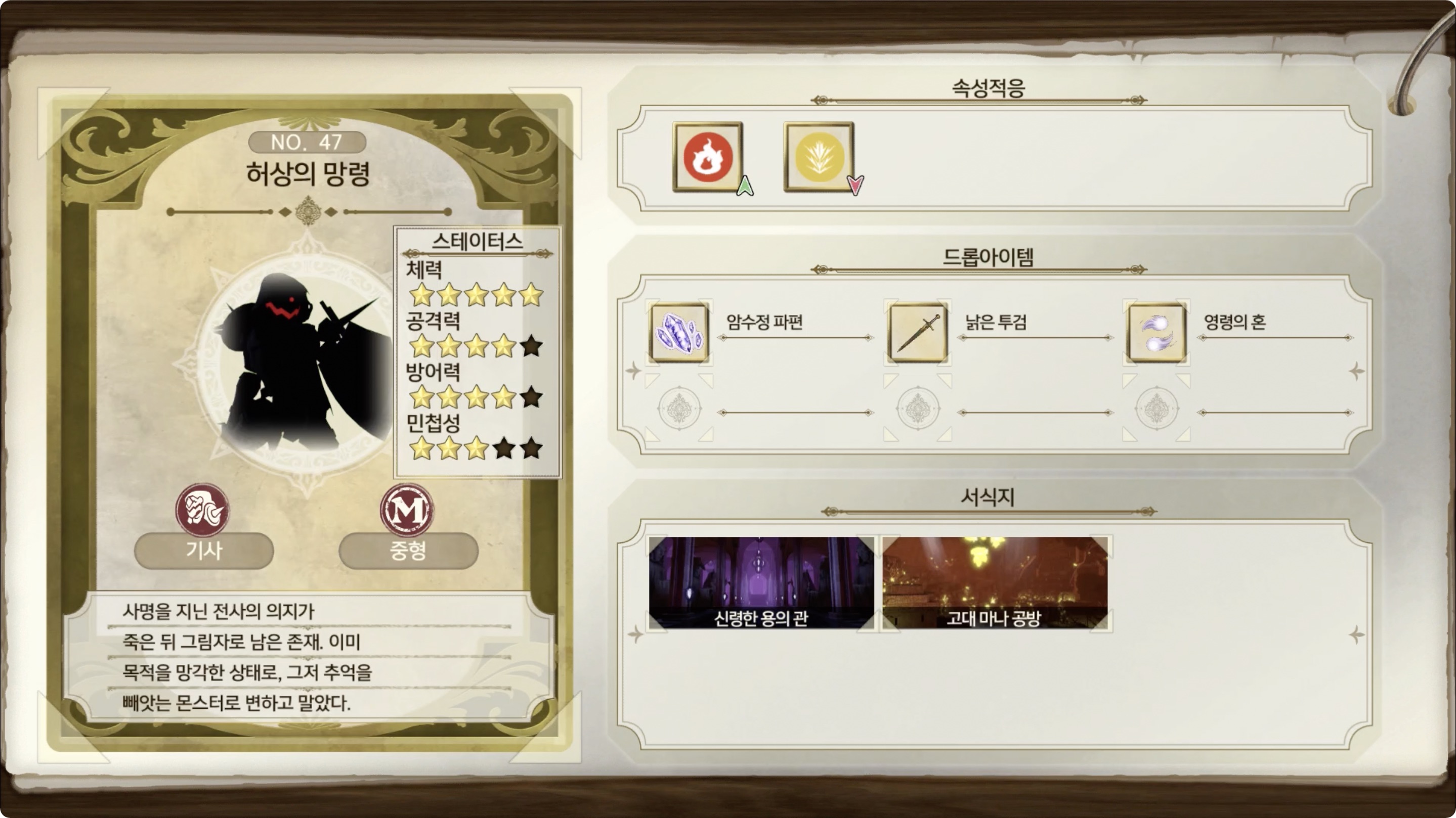 사명을 지닌 전사의 의지가 죽은 뒤 그림자로 남은 존재.