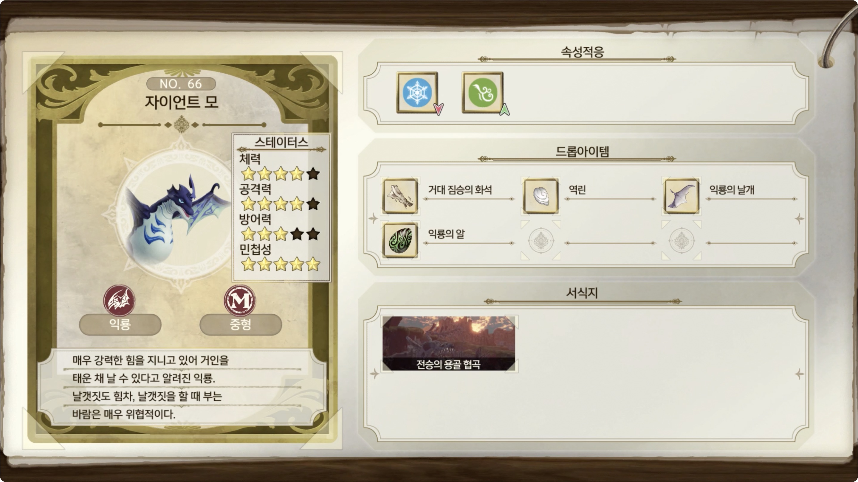 약점 : 빙속성 / 내성 : 풍속성