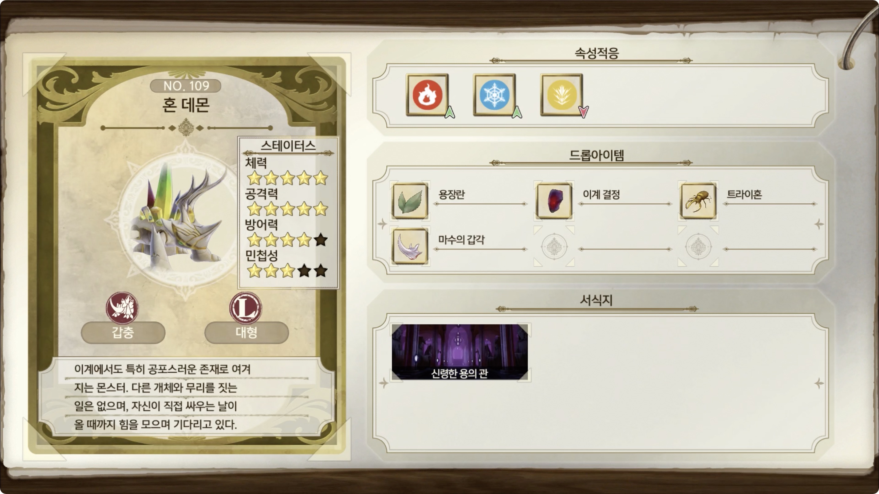 약점 : 뇌속성 / 내성 : 화속성, 빙속성