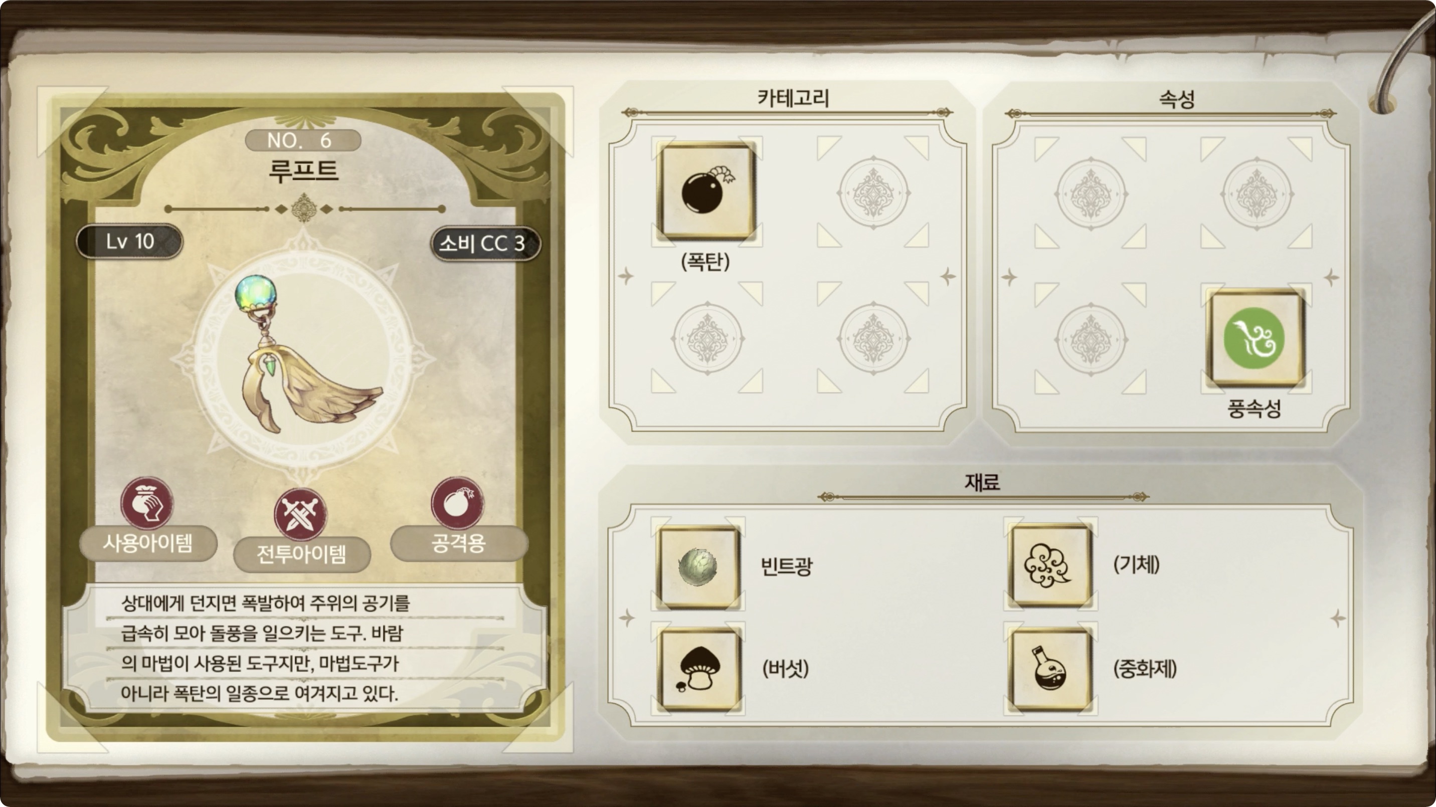 라이자의 아틀리에 2 - 아이템 도감 NO.006 루프트