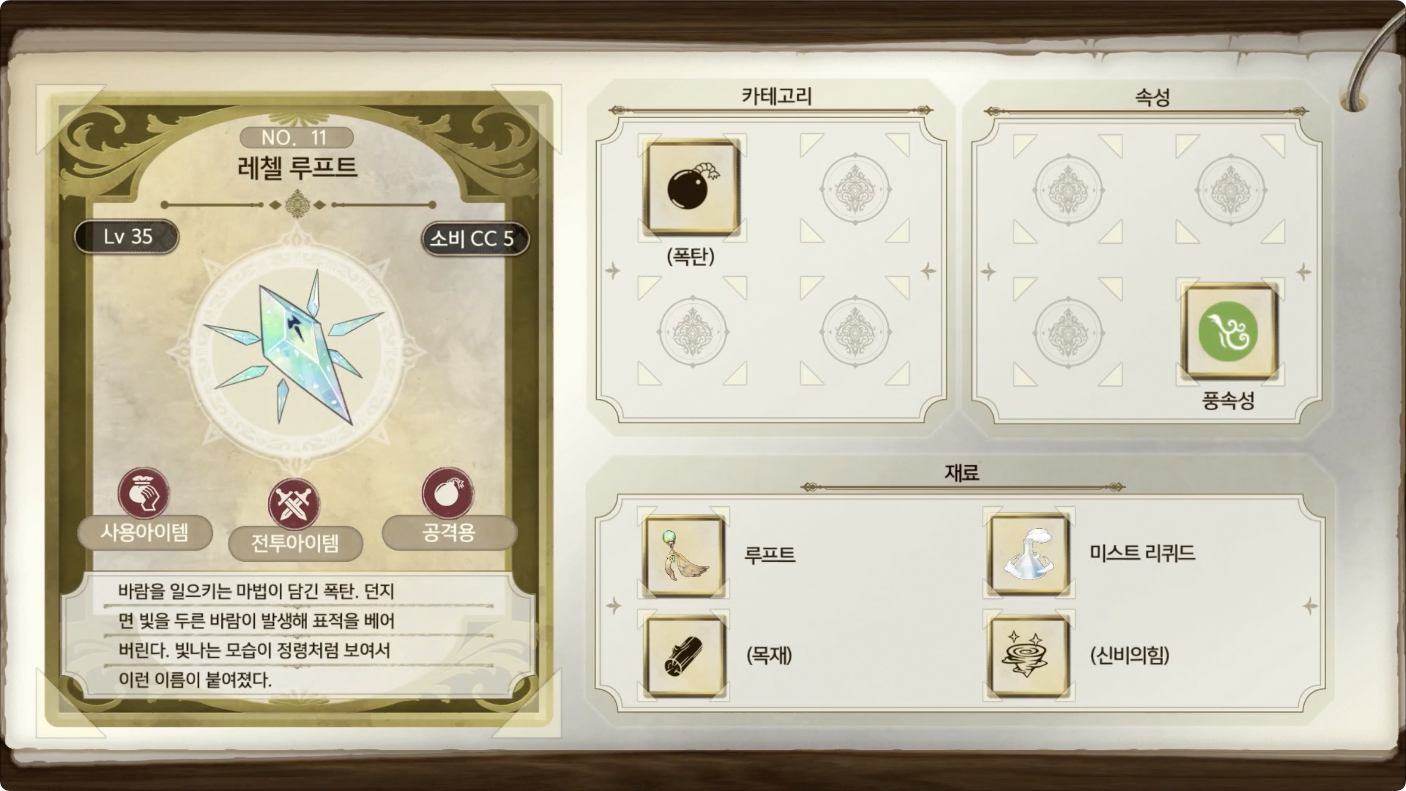 라이자의 아틀리에 2 - 아이템 도감 NO.011 레첼 루프트