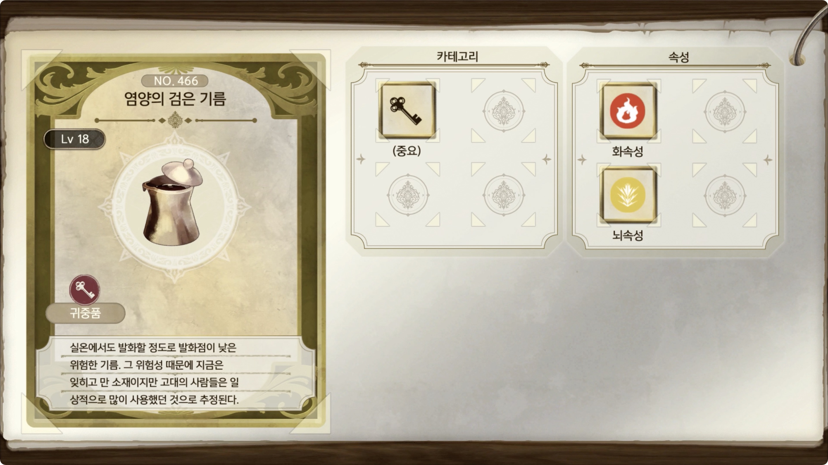 라이자의 아틀리에 2 - 아이템 도감 NO.466 염양의 검은 기름